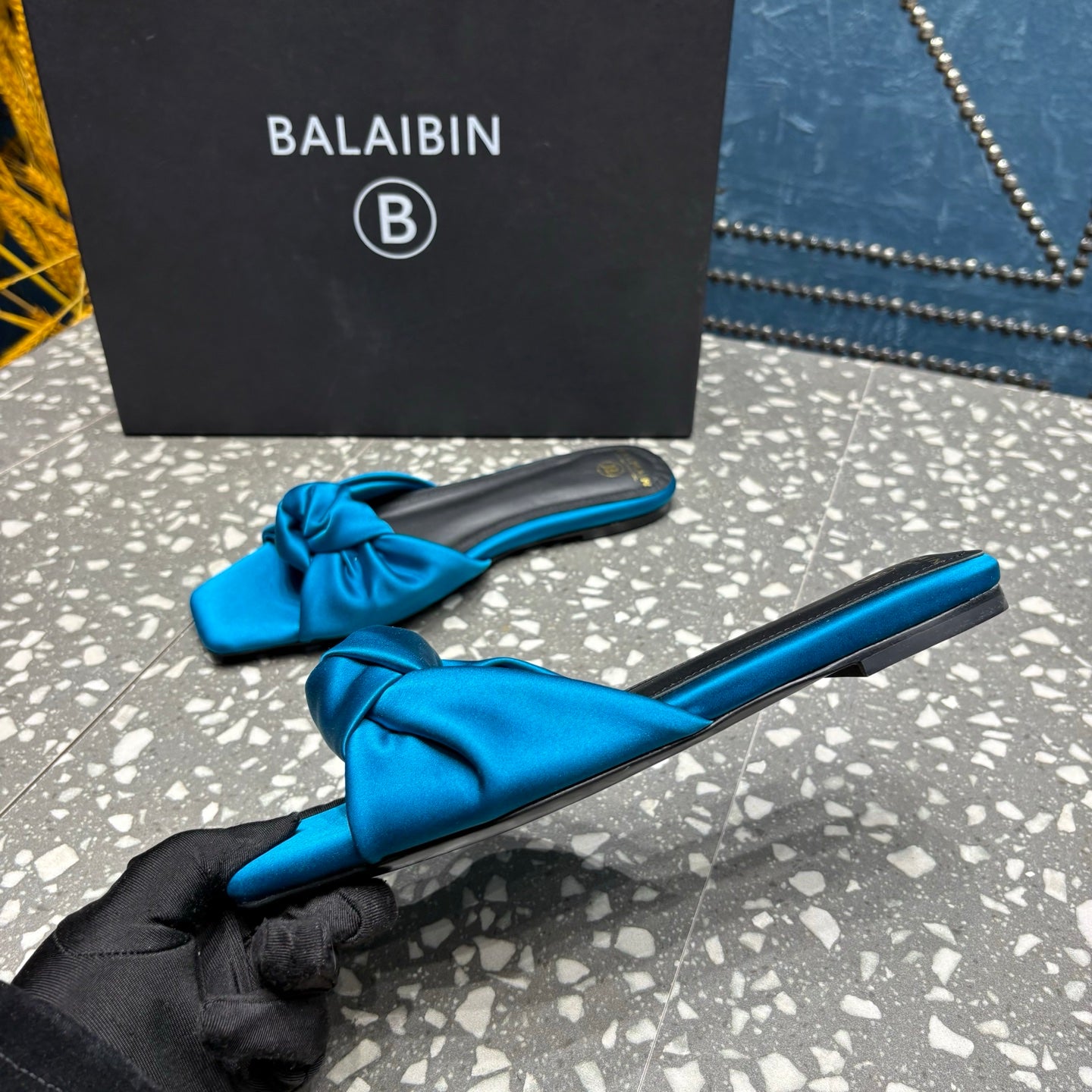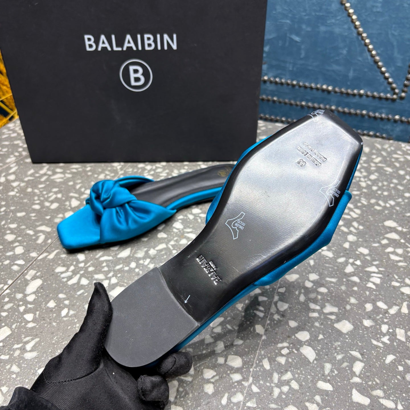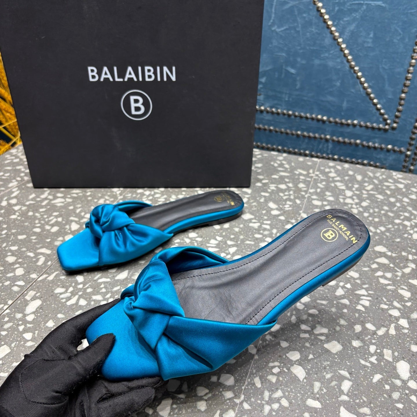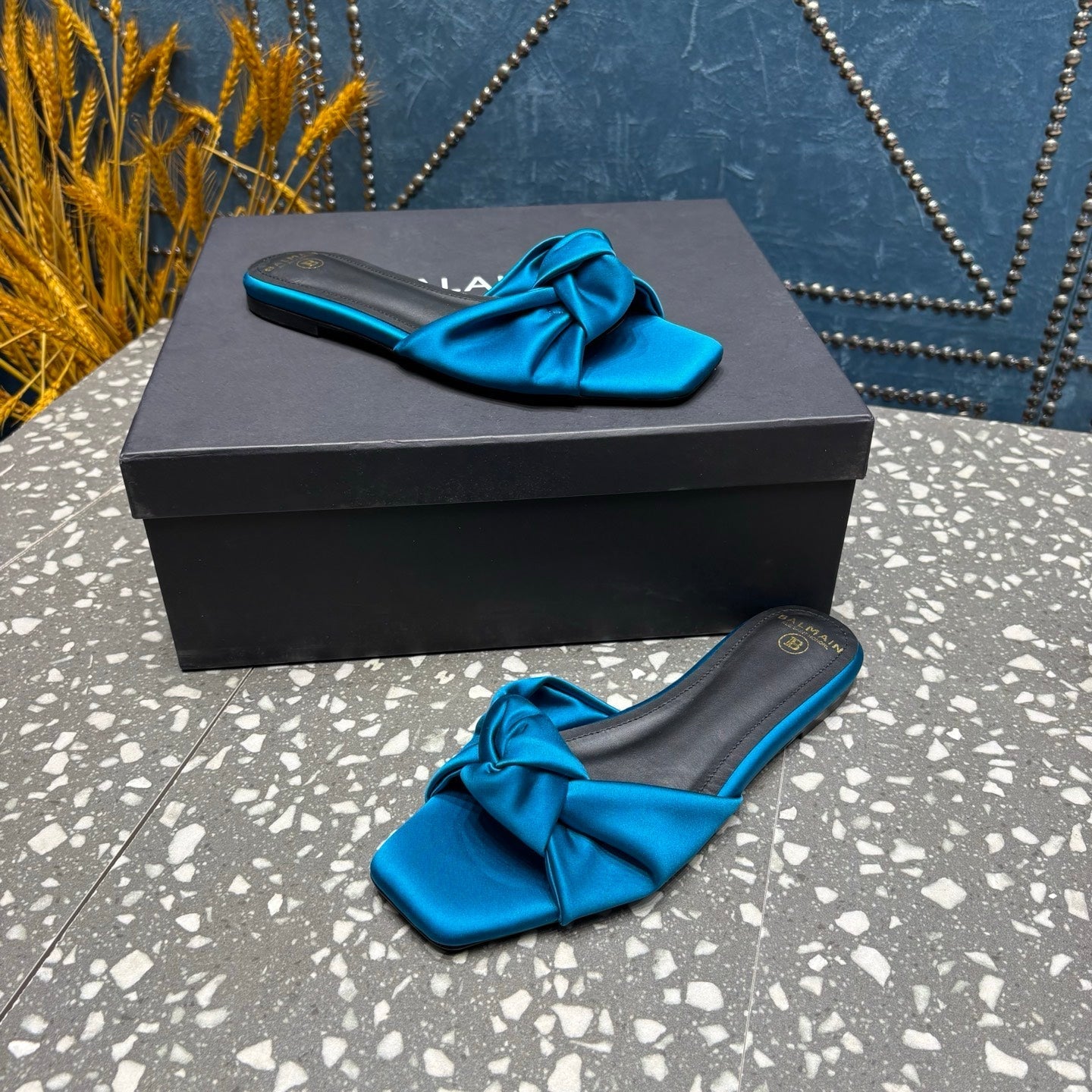 BALMAIN 26S SLIDES IN OCEAN BLUE SATIN