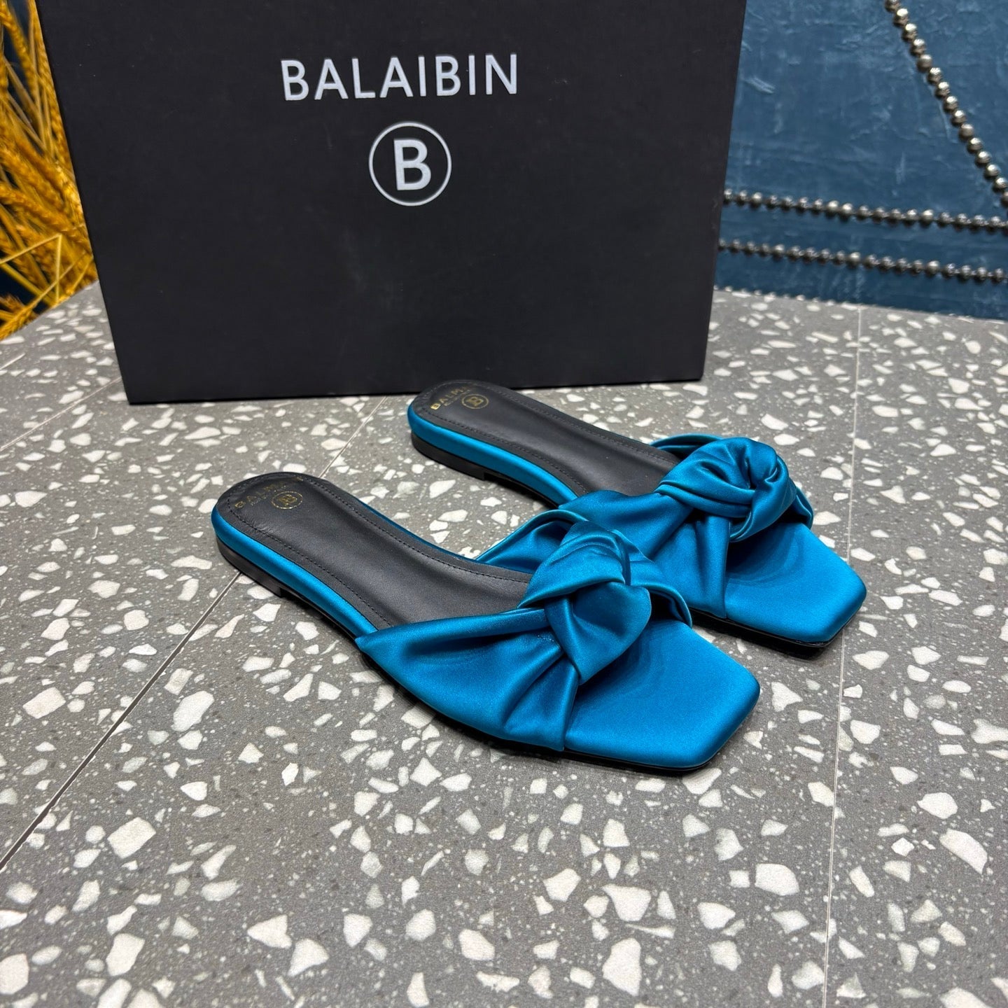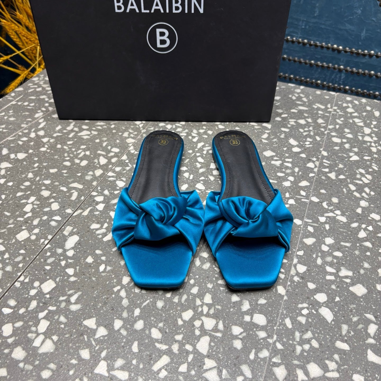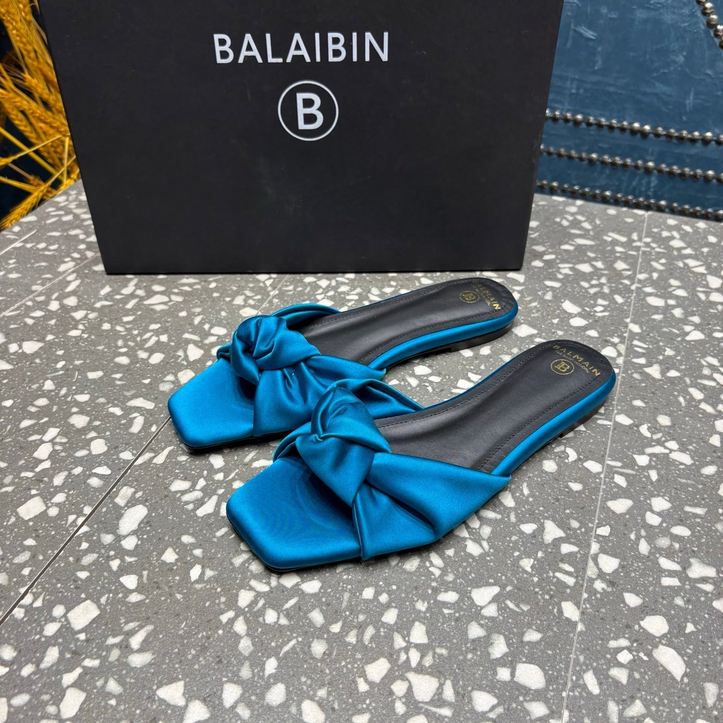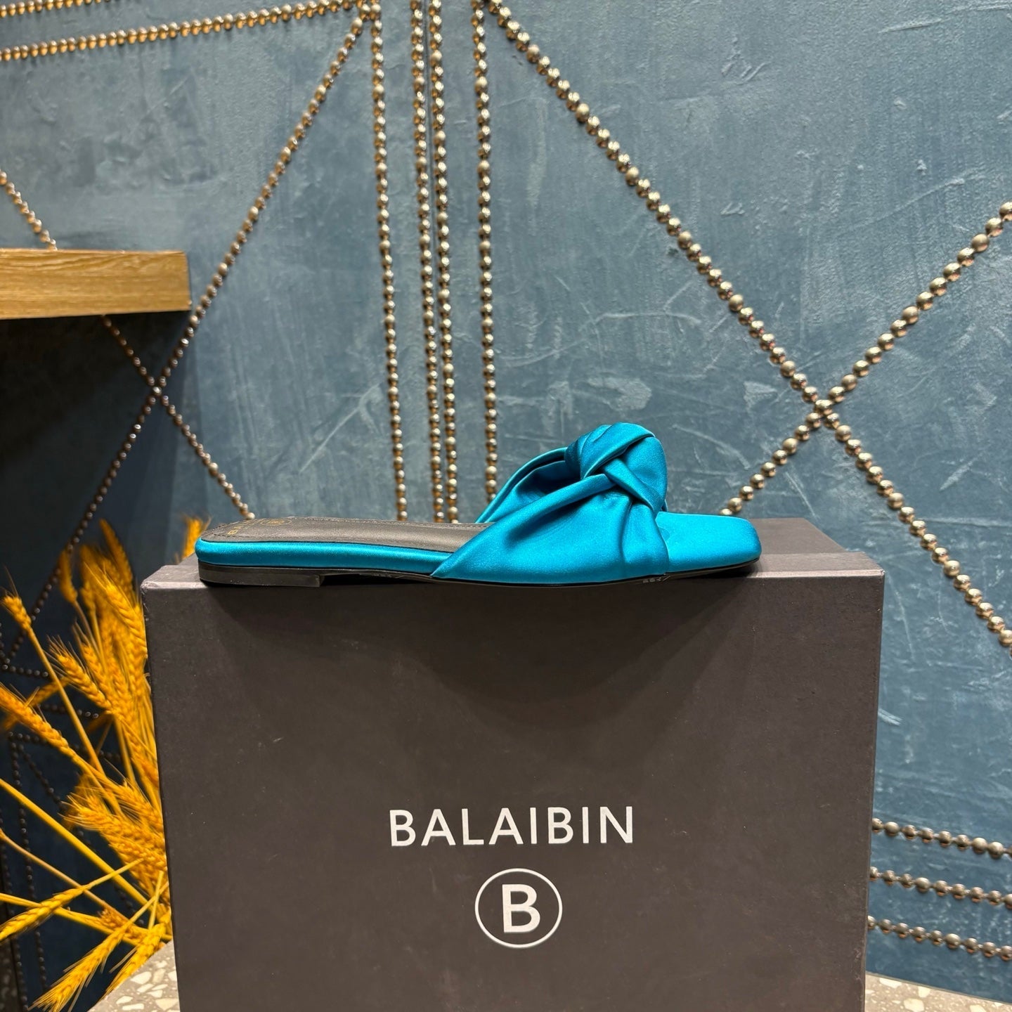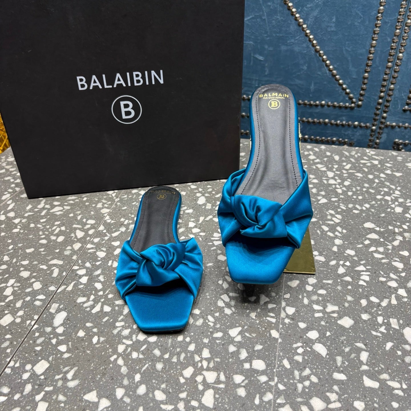 BALMAIN 26S SLIDES IN OCEAN BLUE SATIN