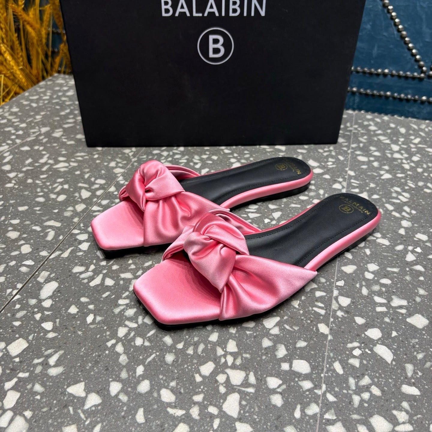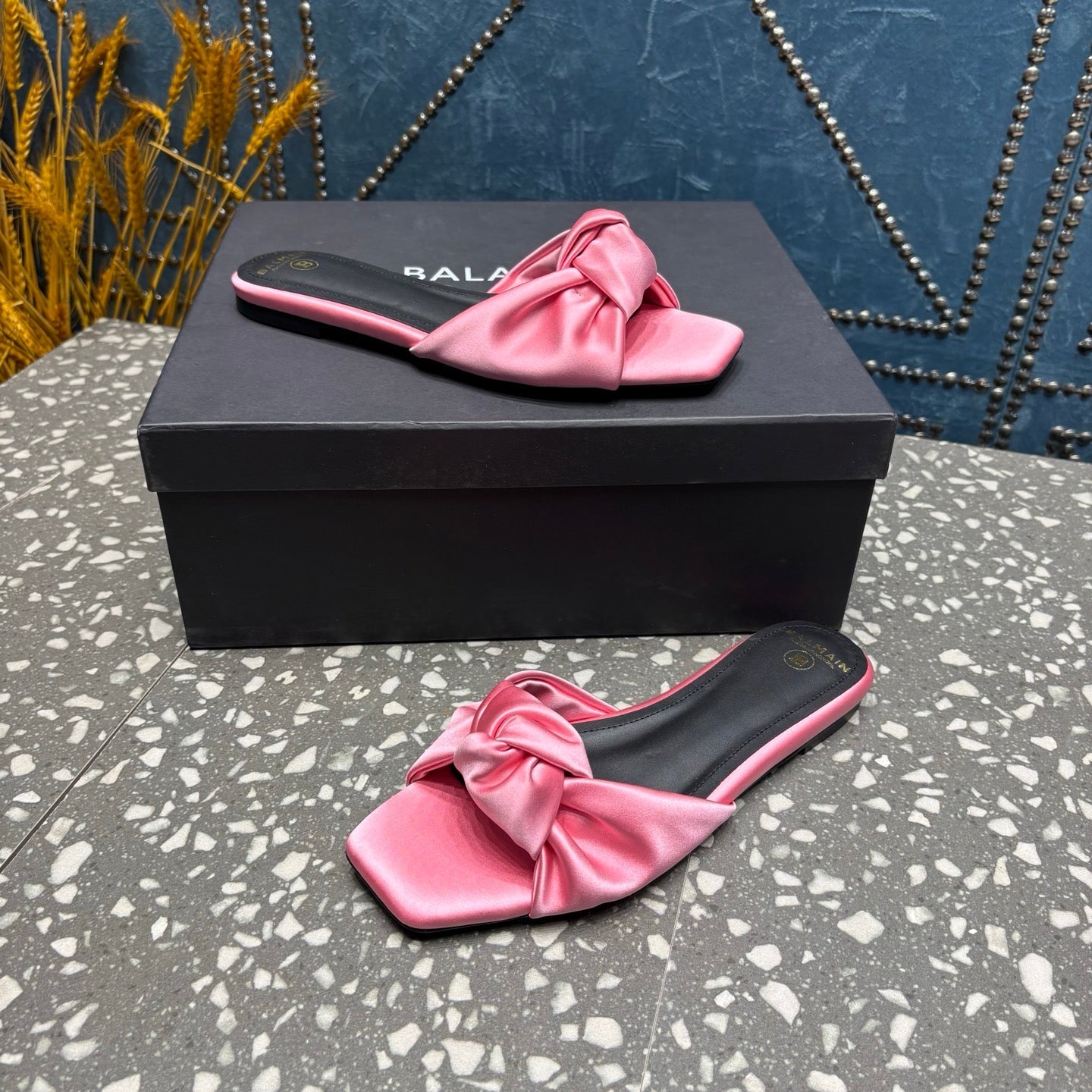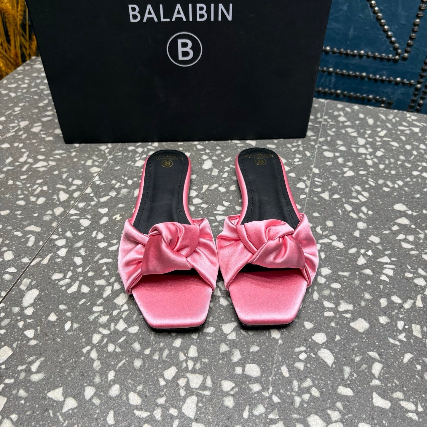 BALMAIN 26S SLIDES IN PINK SATIN