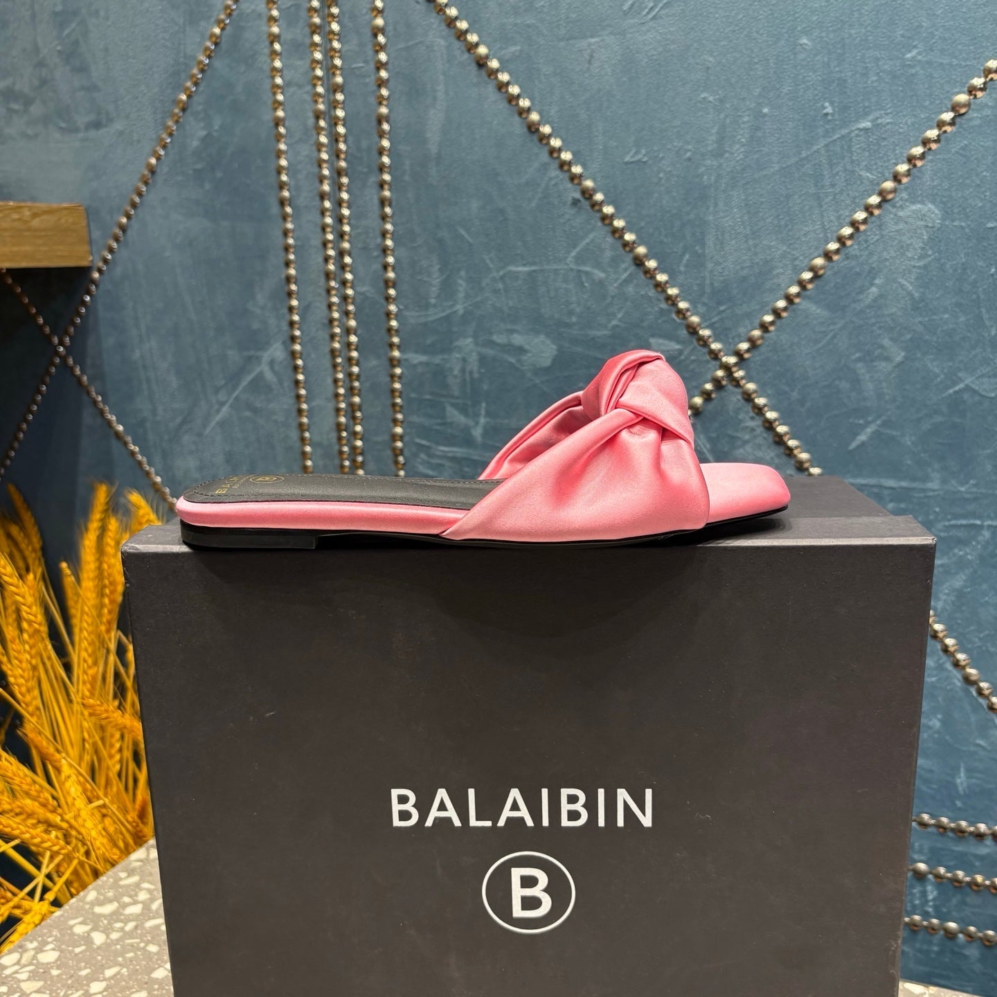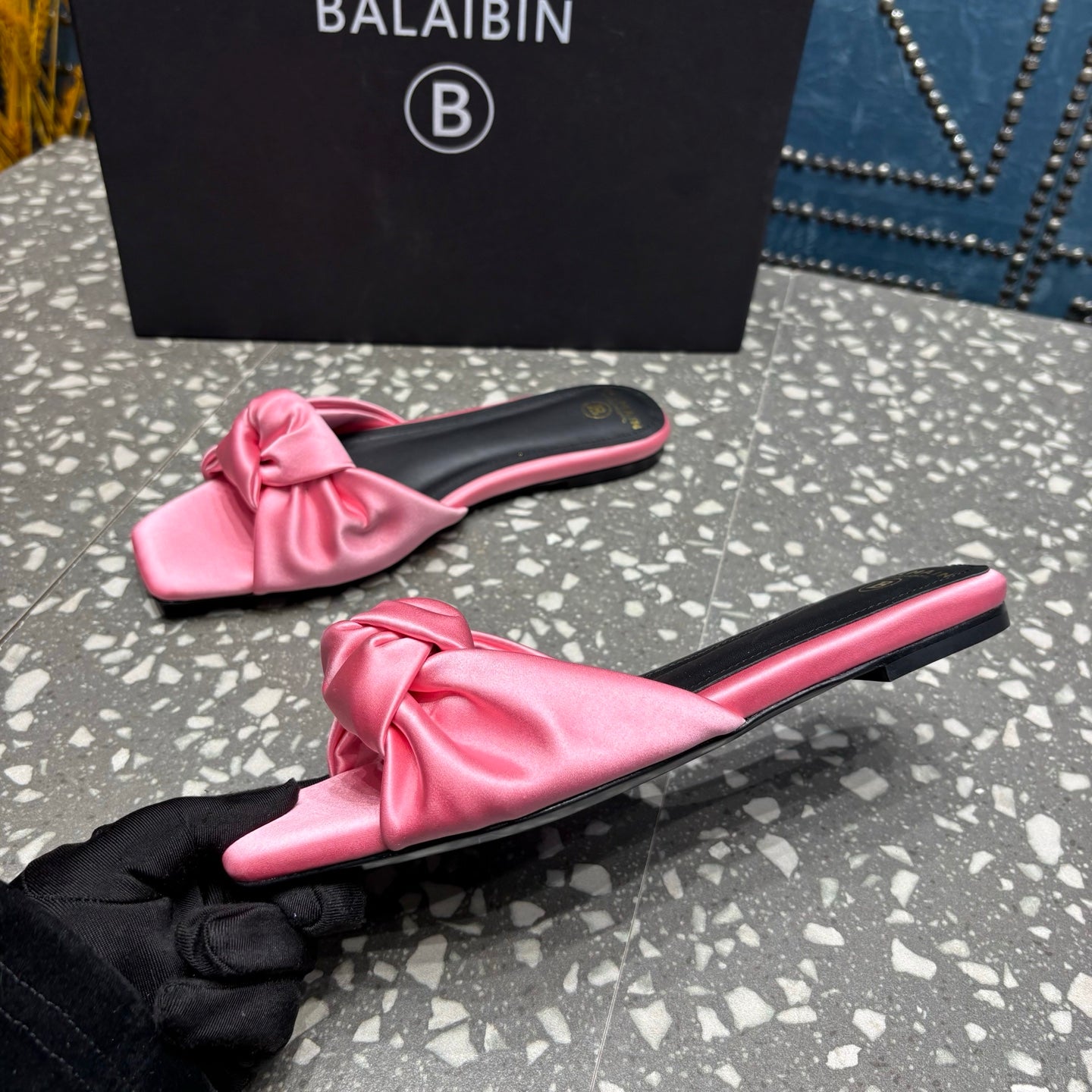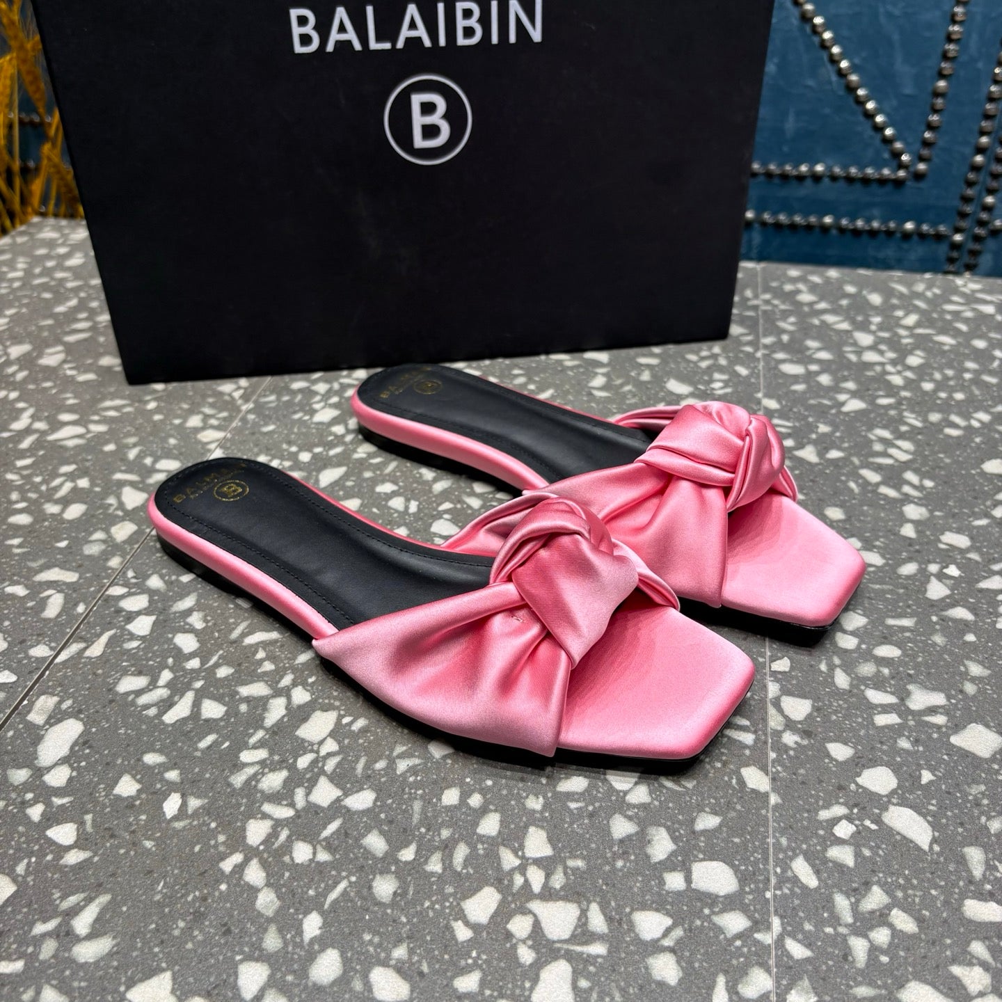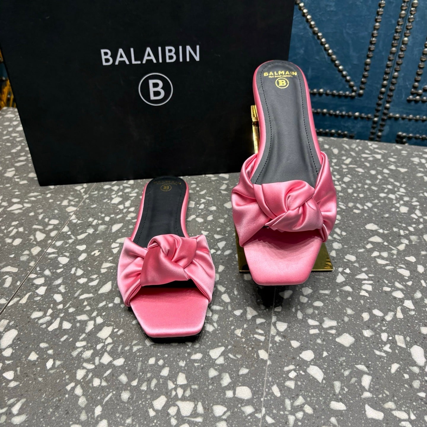 BALMAIN 26S SLIDES IN PINK SATIN