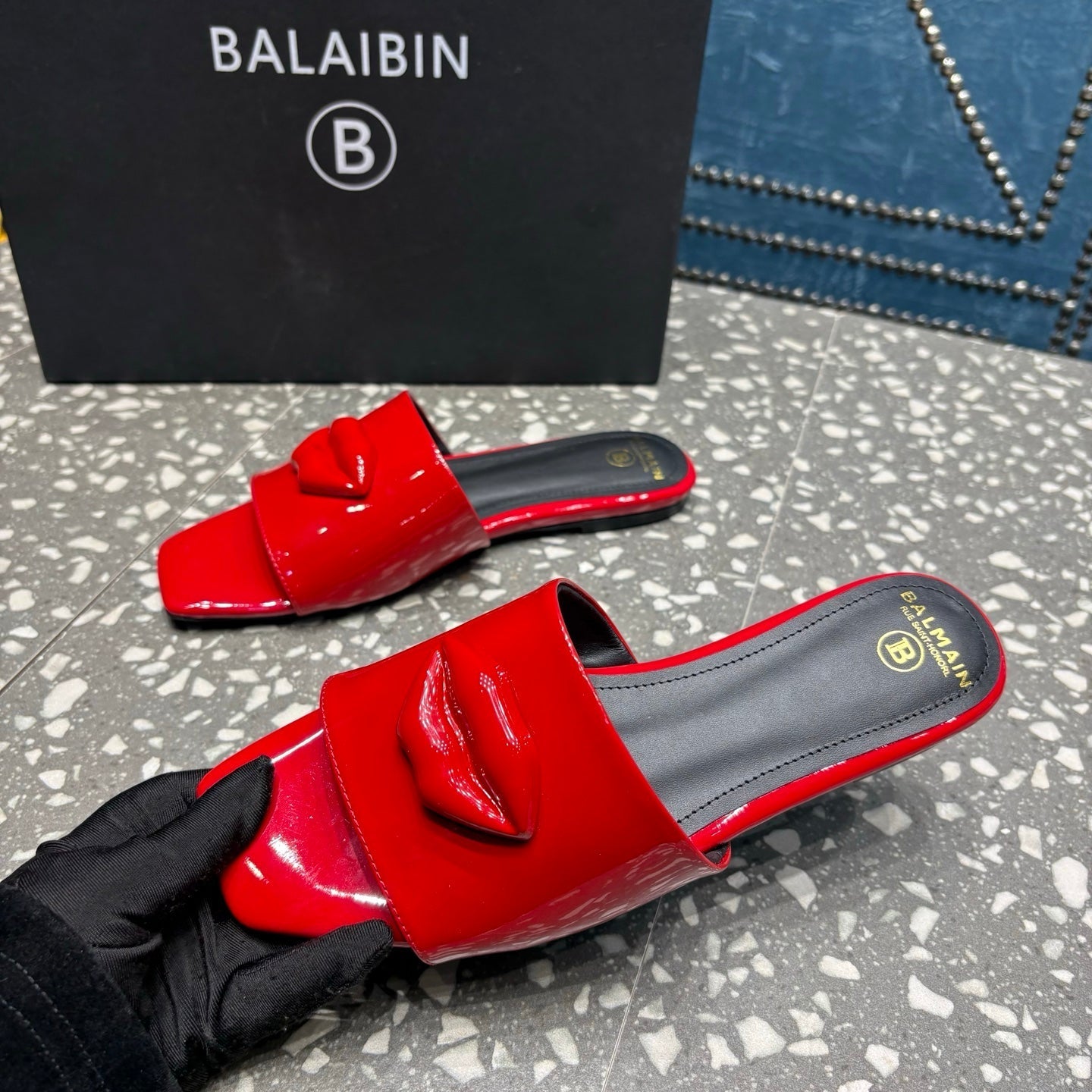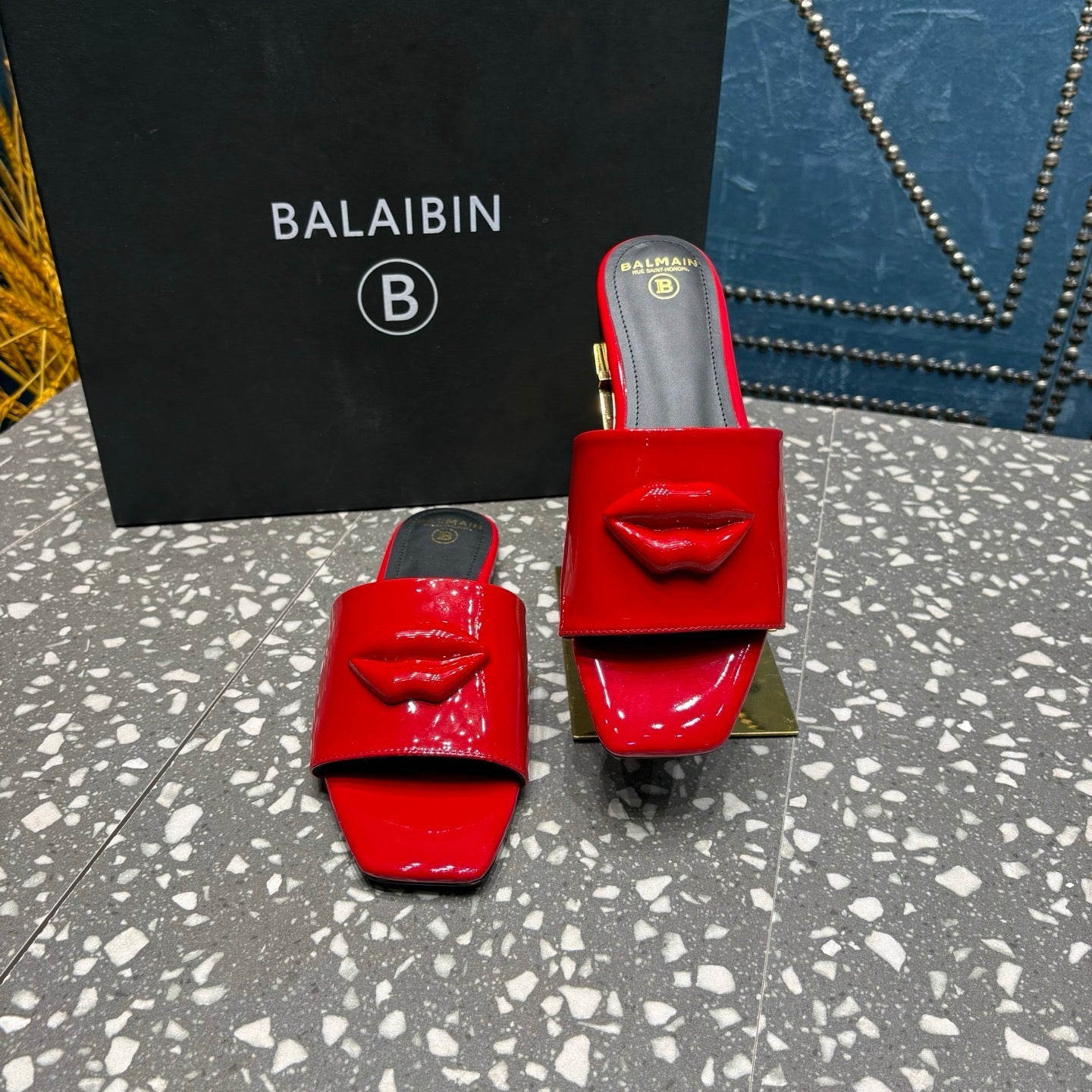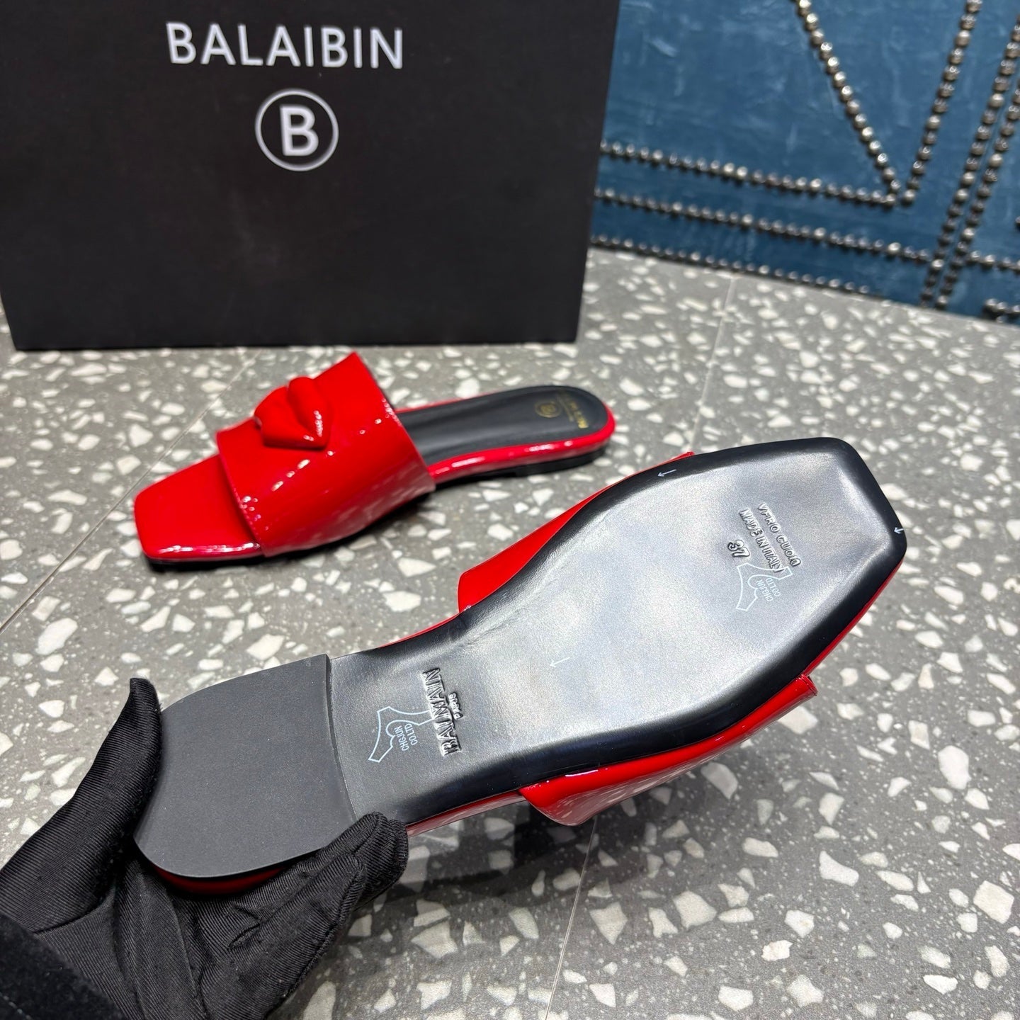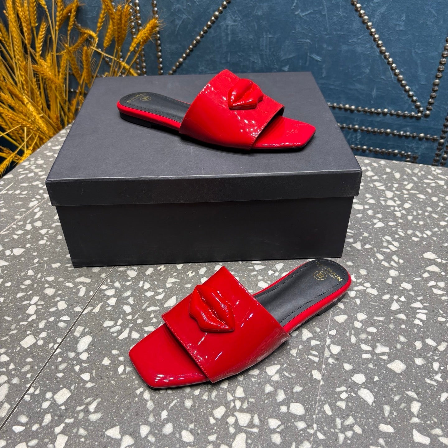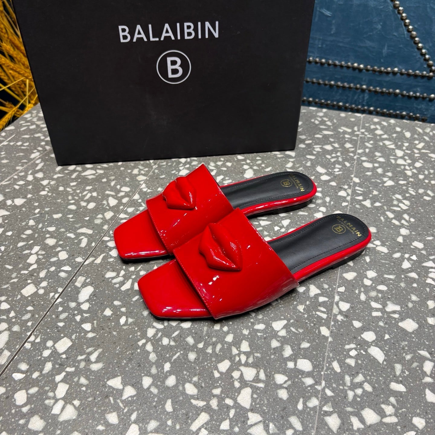BALMAIN 26S SLIPPERS IN RED GLOSSY CALFSKIN