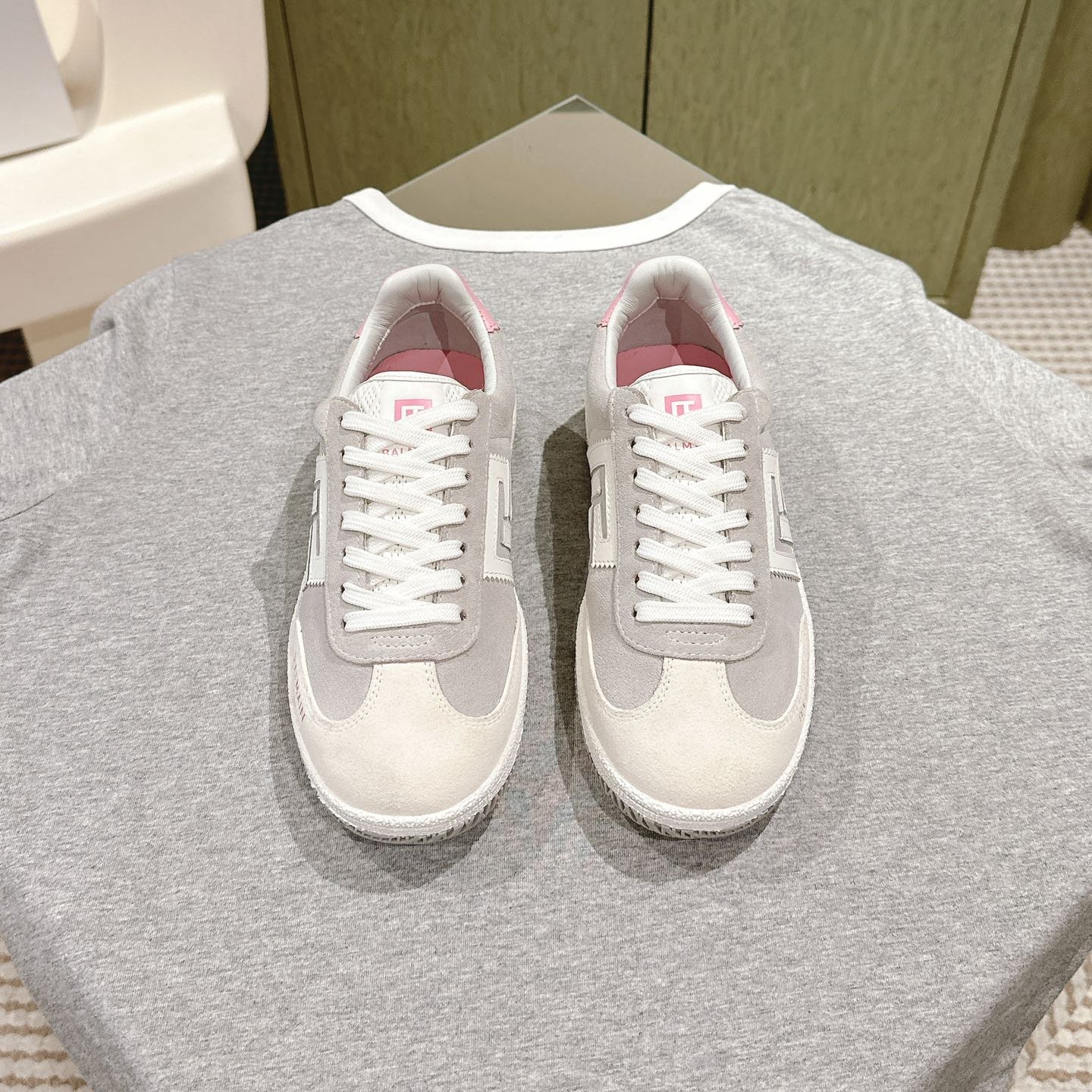 BALMAIN 26S SNEAKERS IN LIGHT BEIGE AND SOFT TAUPE SUEDE
