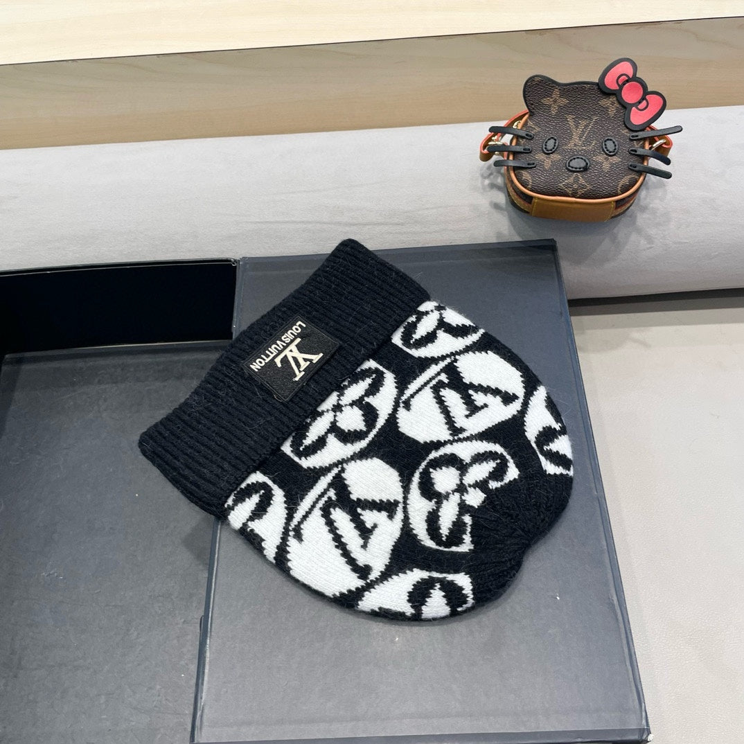 KNITTED BEANIE HAT IN BLACK MIX WHITE WOOL AND RABBIT FUR 426245