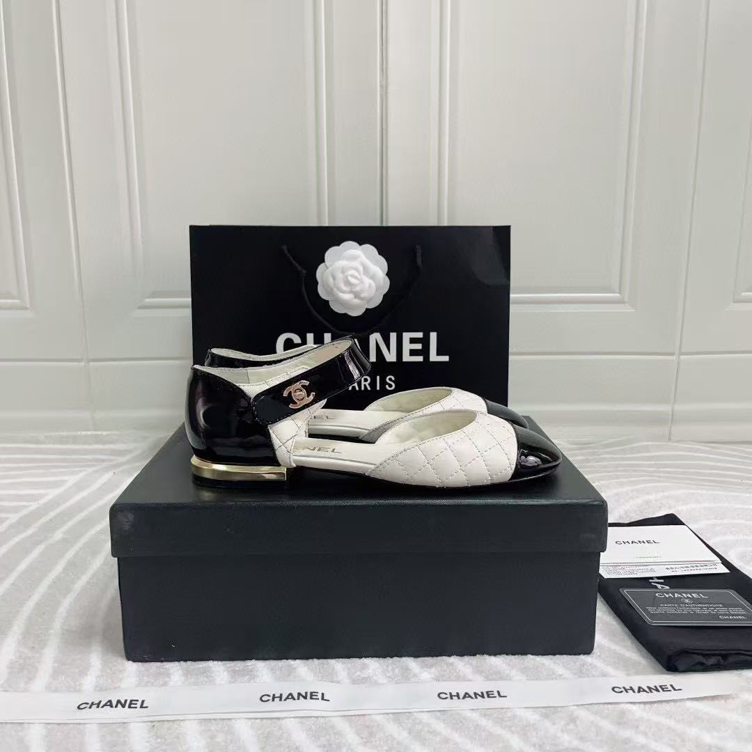 CC CLASSIC MARY JANE FLATS IN WHITE AND BLACK QUILTED CALFSKIN