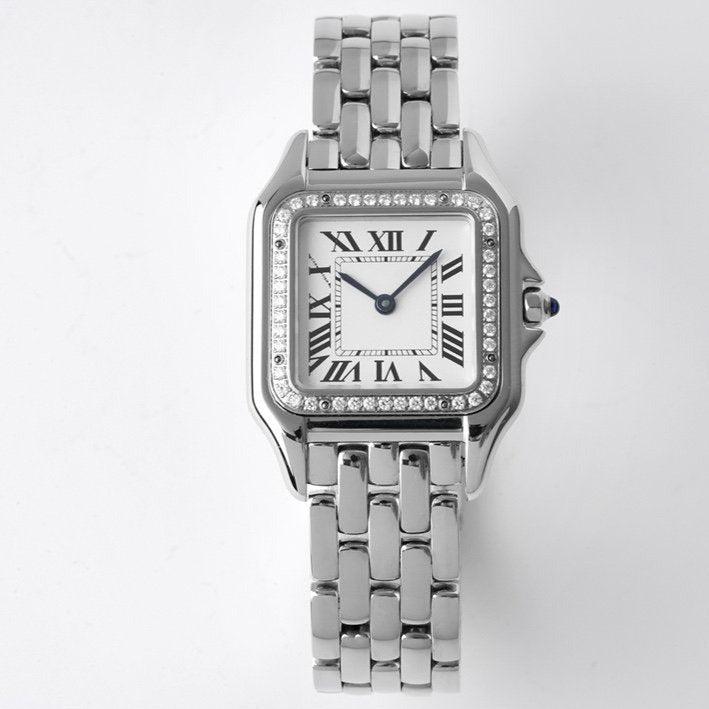 PANTHERE 27MM SILVER CASE DIAMOND BEZEL WHITE DIAL