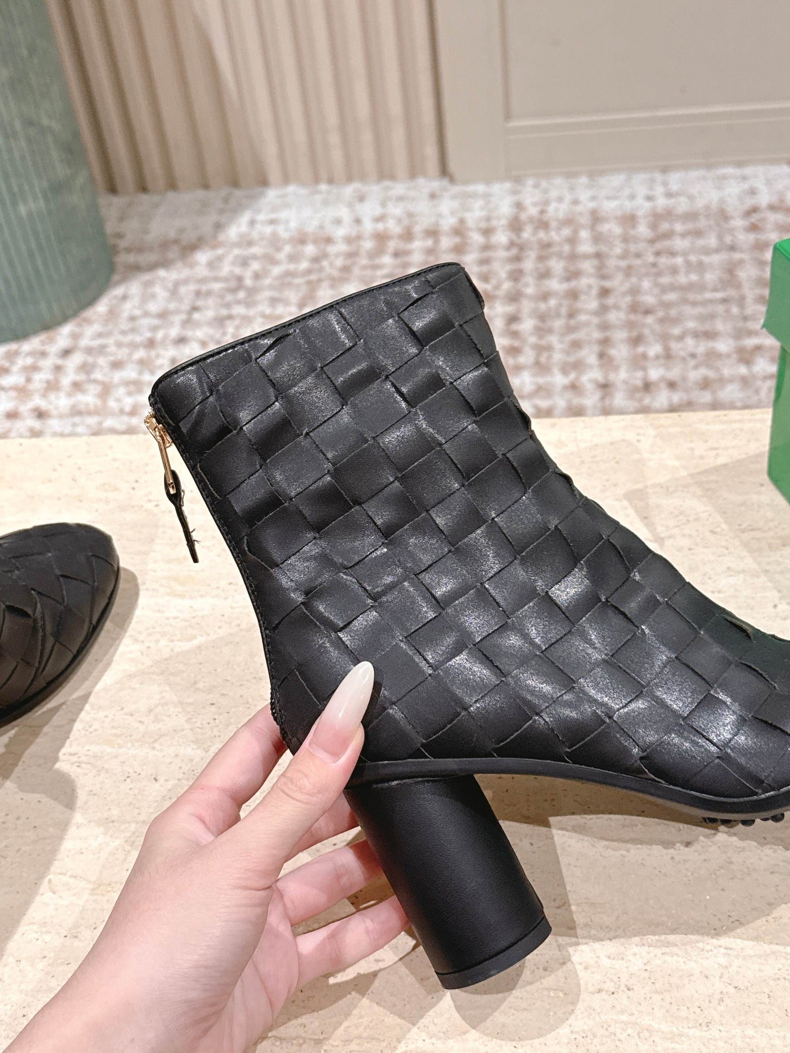 BOTTEGA VENETA 26S INTRECCIATO BOOTS 85 MM IN BLACK LAMBSKIN