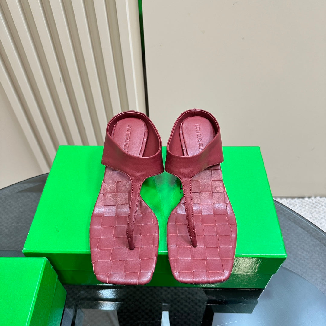 MARELLA THONG IN CURRANT RED LEATHER WITH SIGNATURE INTRECCIATO INSOLE 55 MM
