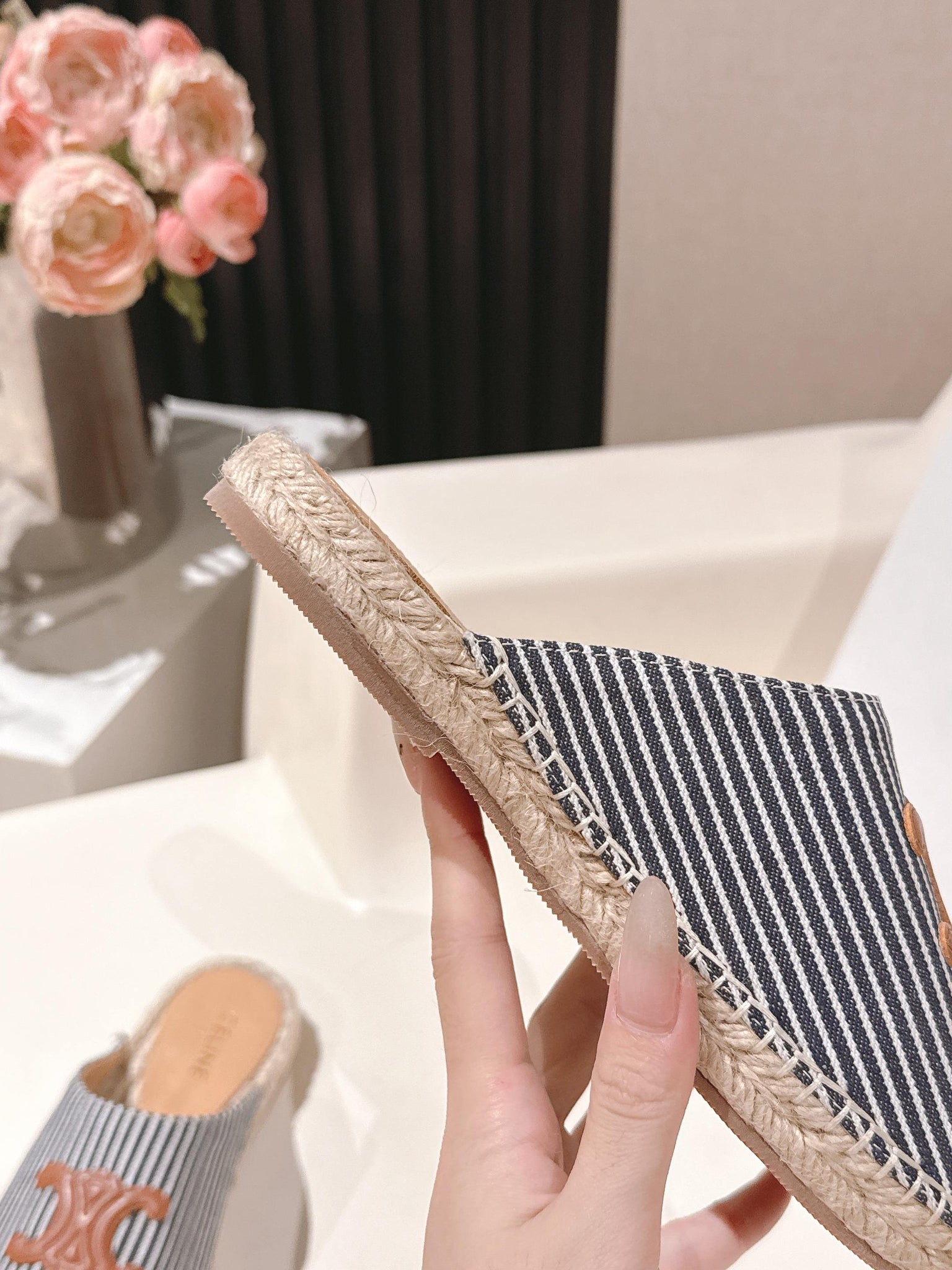 CELINE 25S LES ESPADRILLES MULE IN BLUE STRIPES CANVAS
