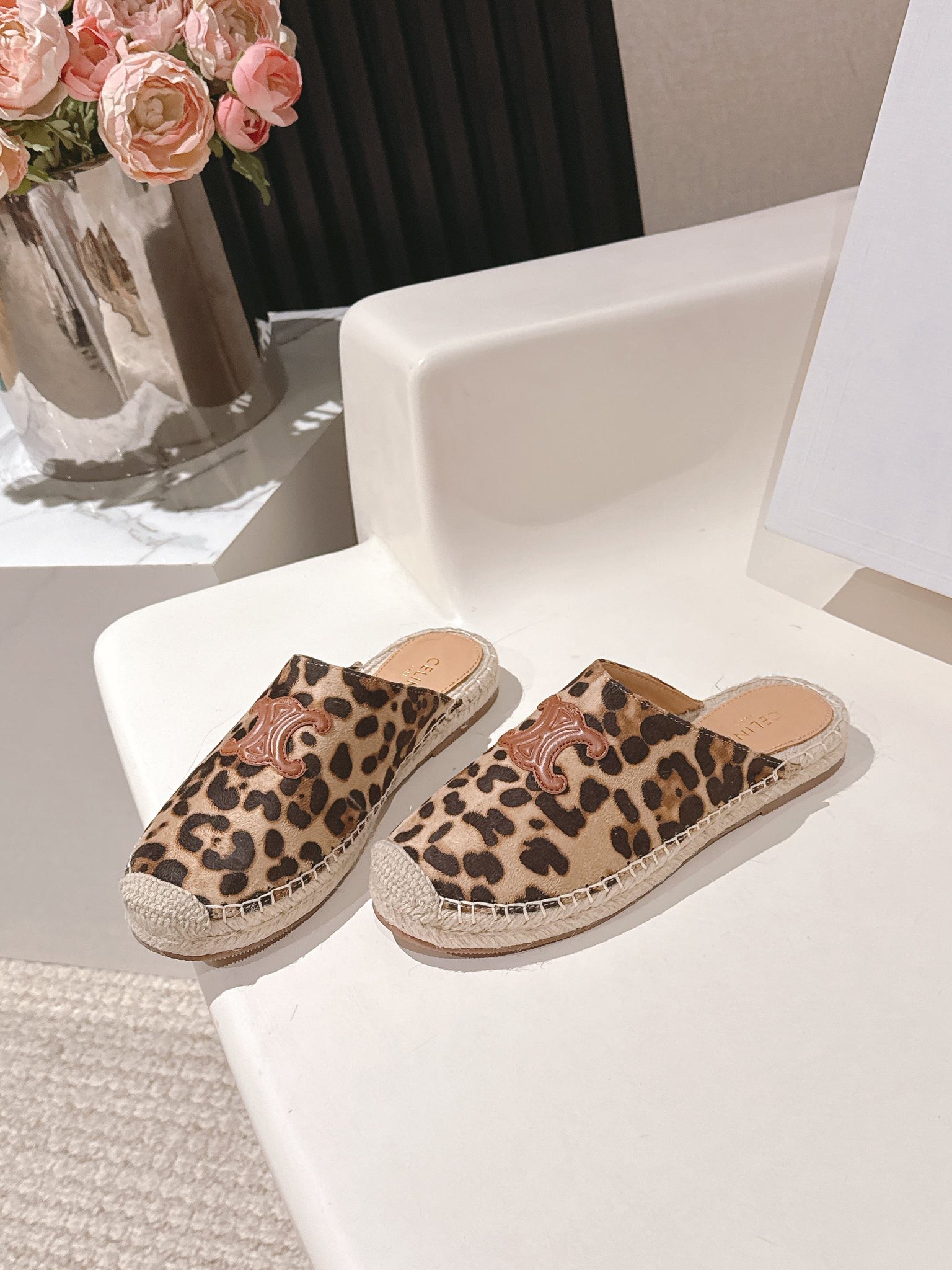 CELINE 25S LES ESPADRILLES MULE IN LEOPARD PRINTED HAIRY CALFSKIN