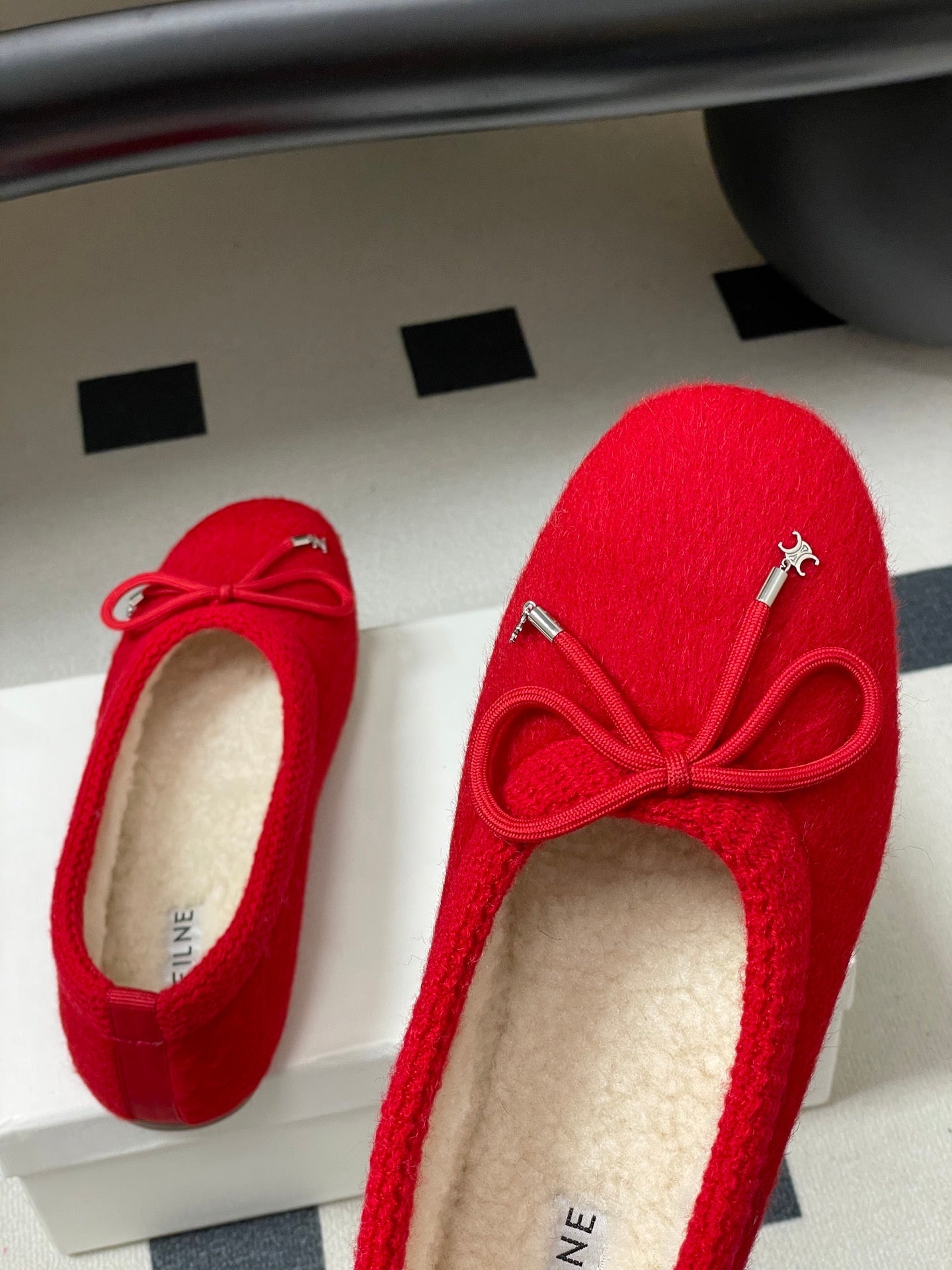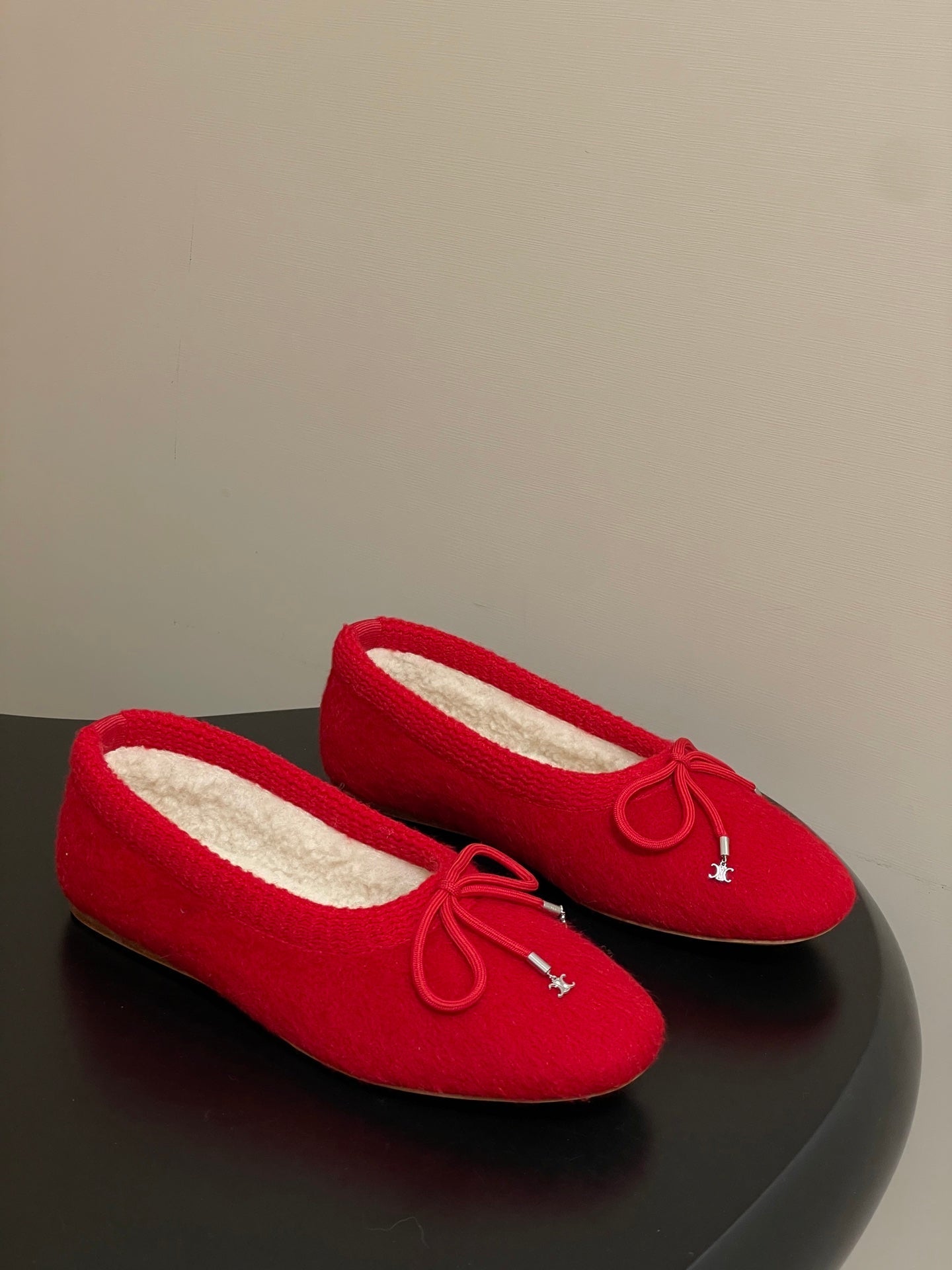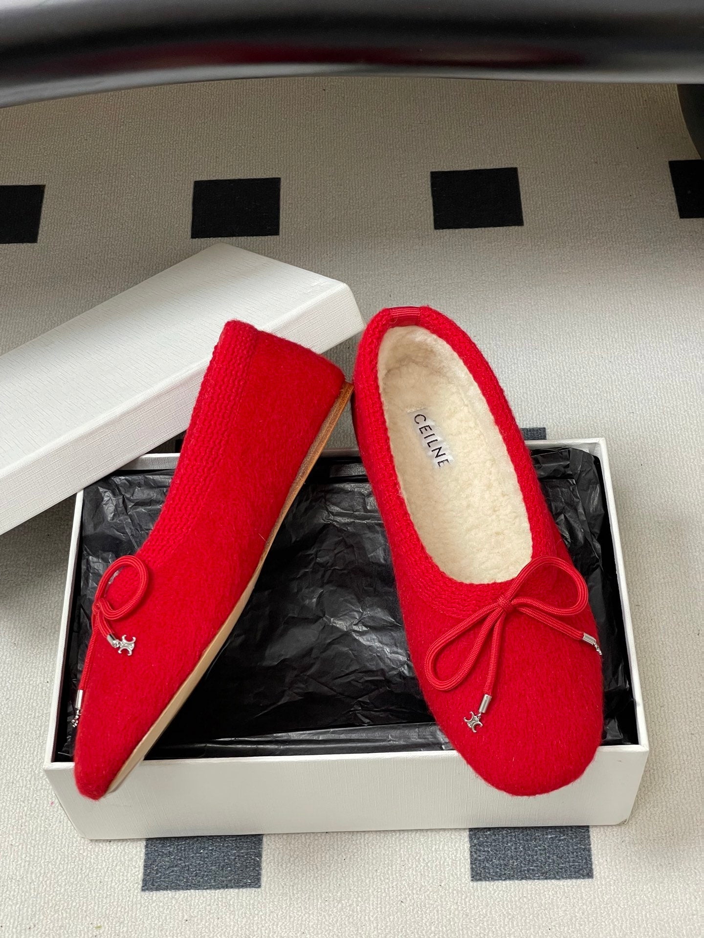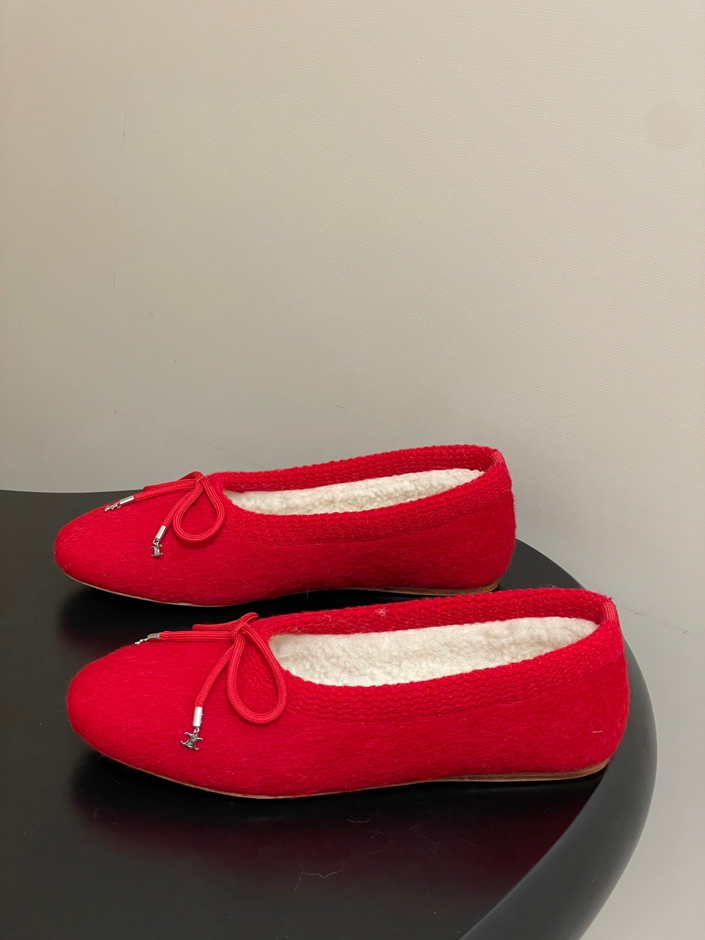 CELINE 26S BALLET FLATS IN RED WOOL WITH BOW STYLE 3