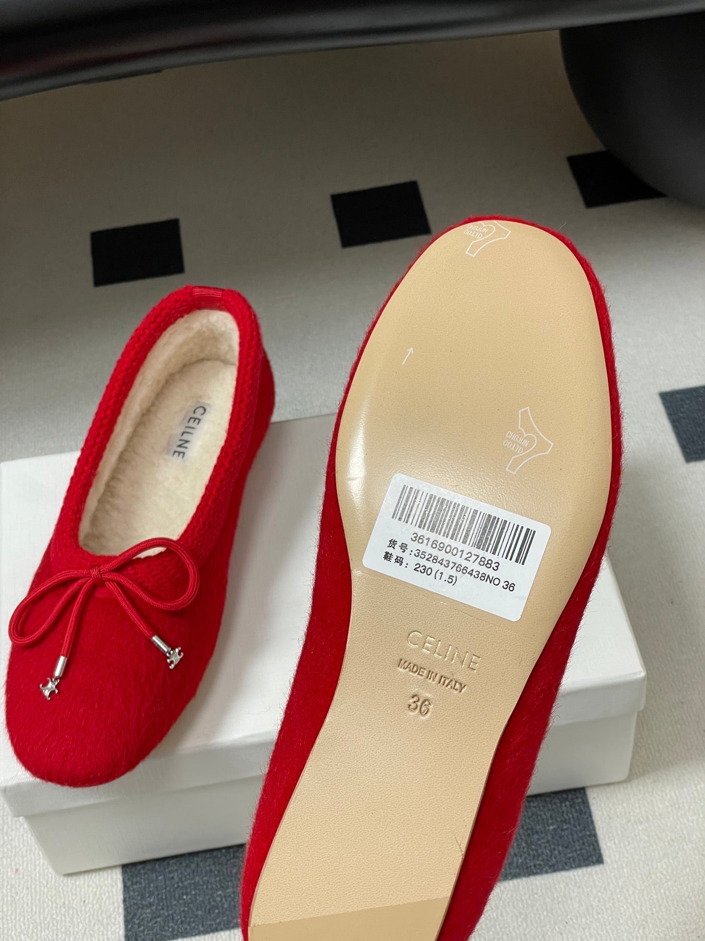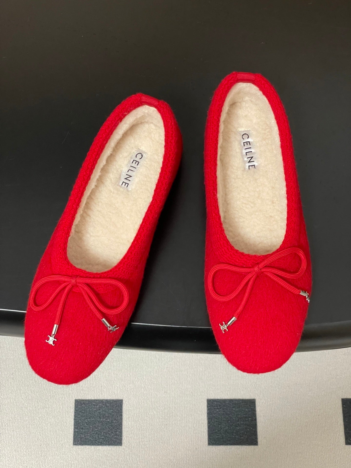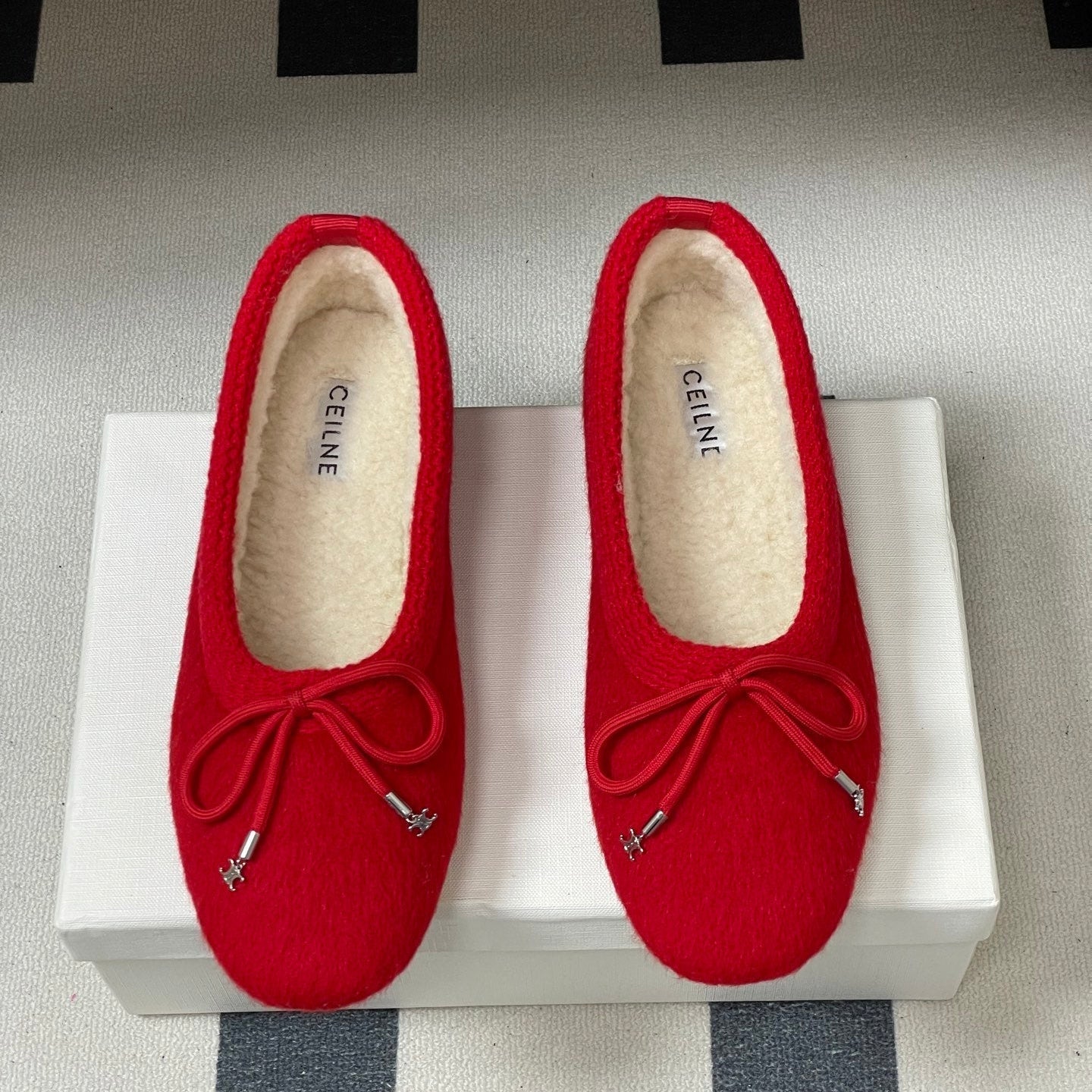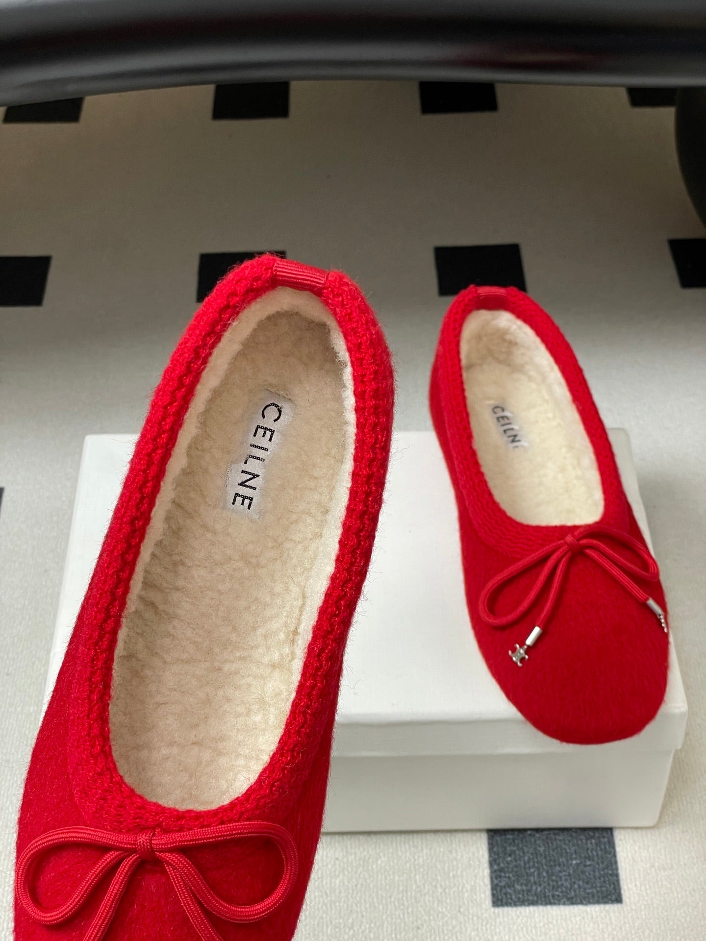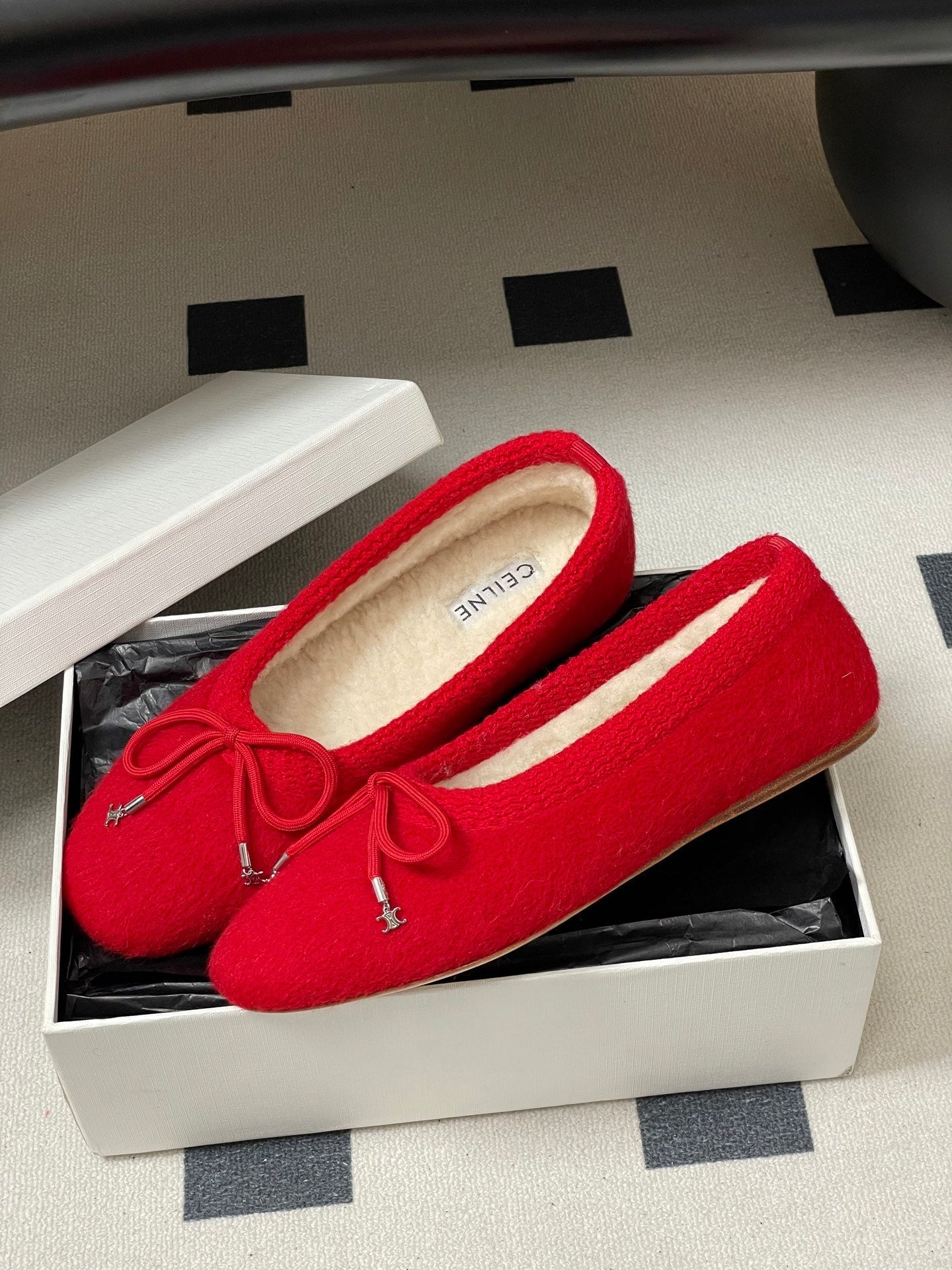 CELINE 26S BALLET FLATS IN RED WOOL WITH BOW STYLE 3