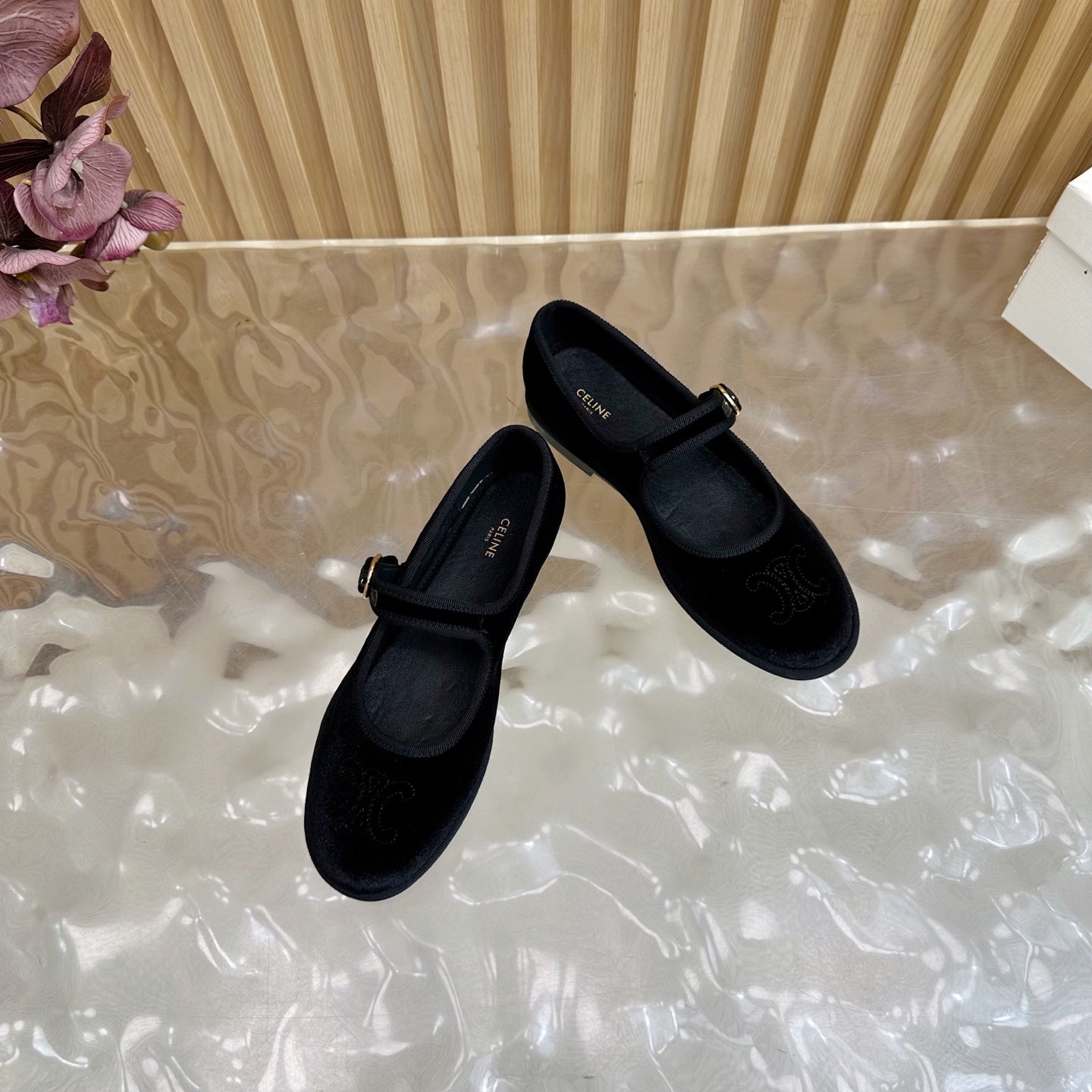 CELINE 26S MARY JANE FLATS IN BLACK VELVET