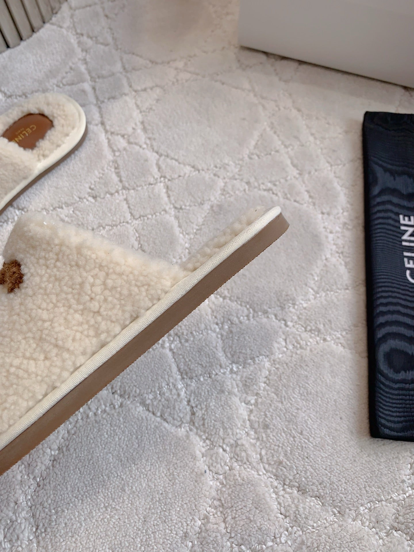 CELINE 26S MULES WITH LOGO IN LIGHT BEIGE AND BROWN WOOL
