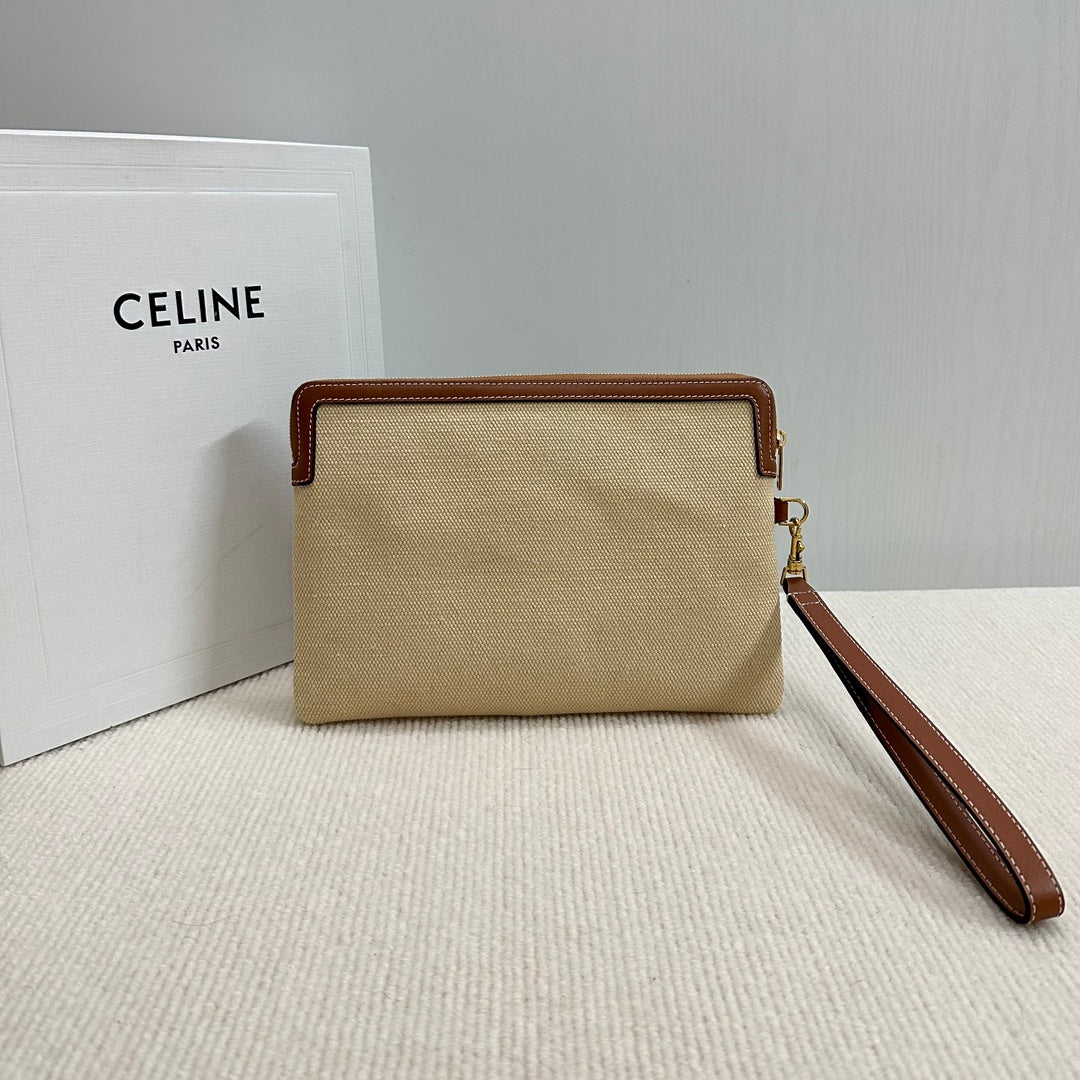 SMALL POUCH 25 IN BEIGE CANVAS AND BROWN CALFSKIN