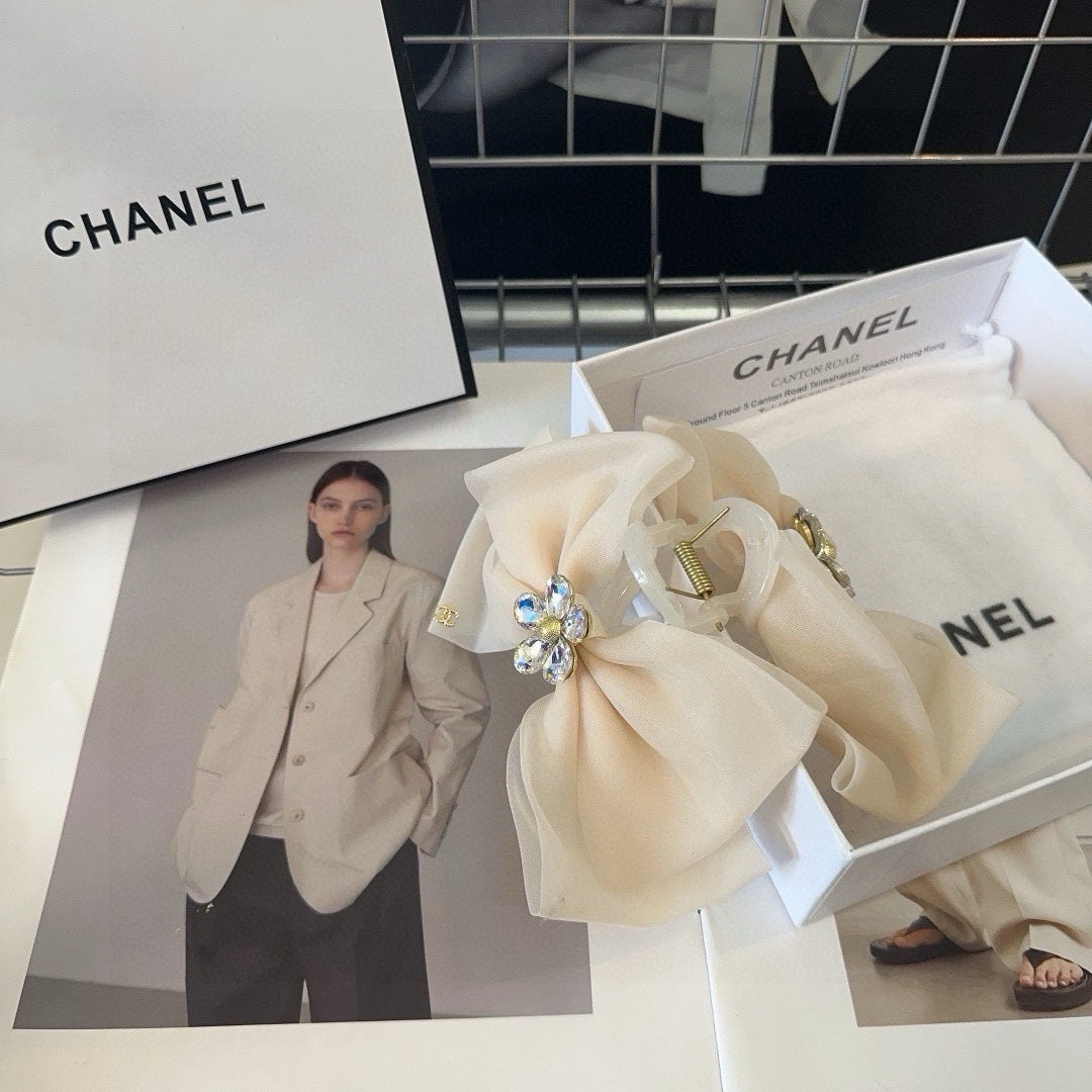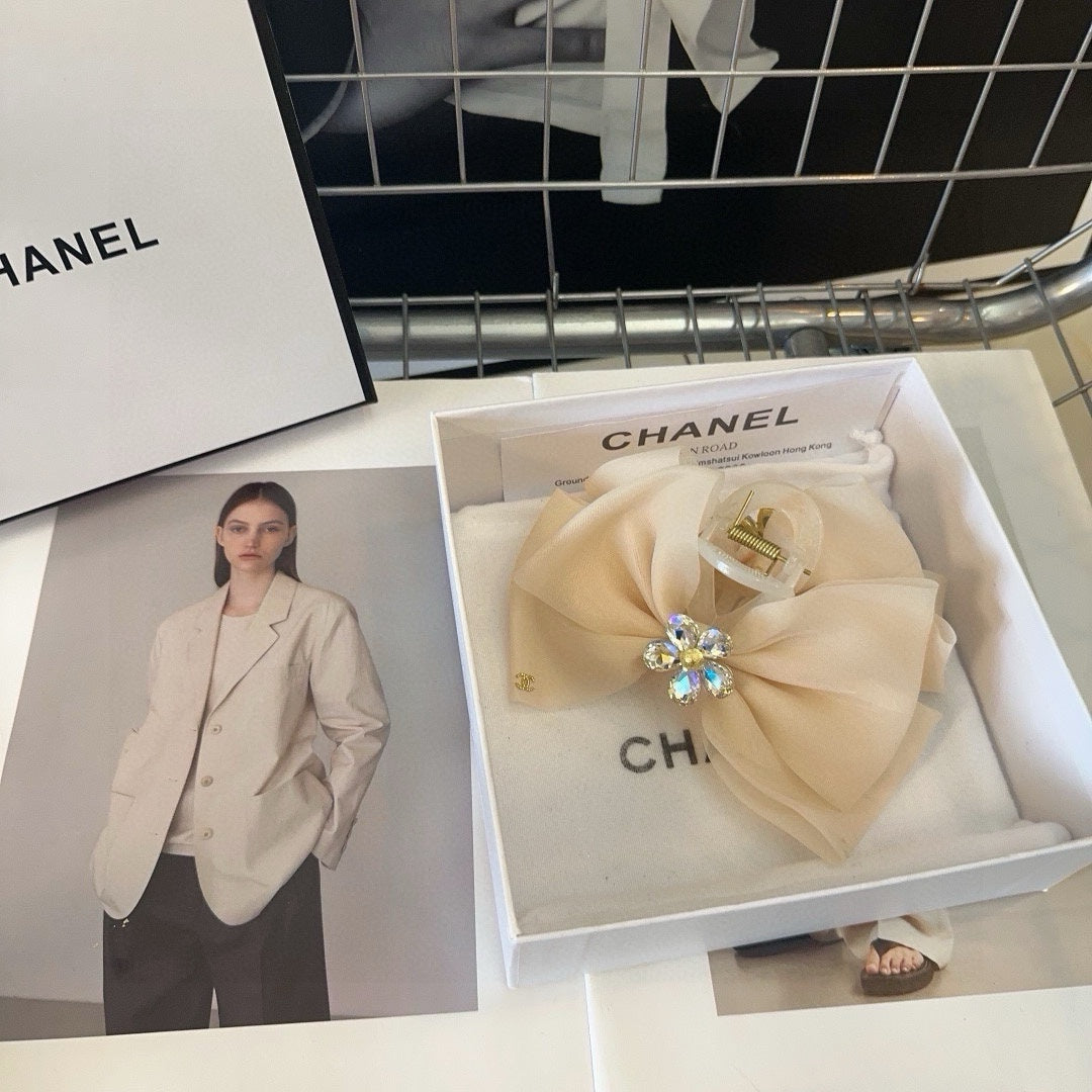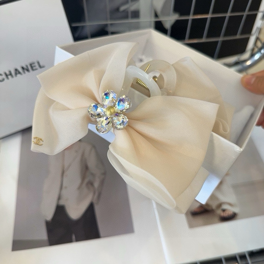 BEIGE CREAM VOILE FABRIC AND RESIN CLAW CLIP 432859