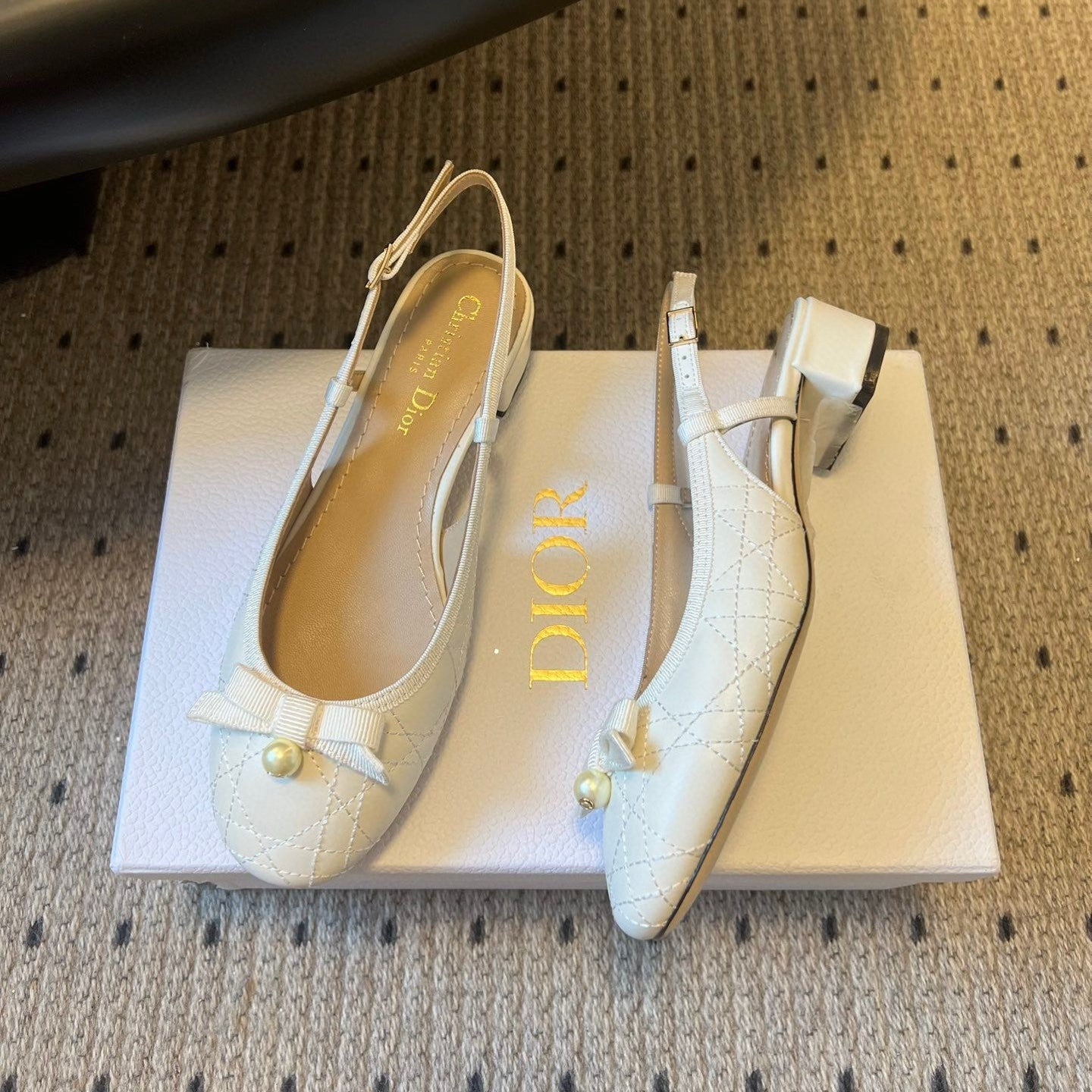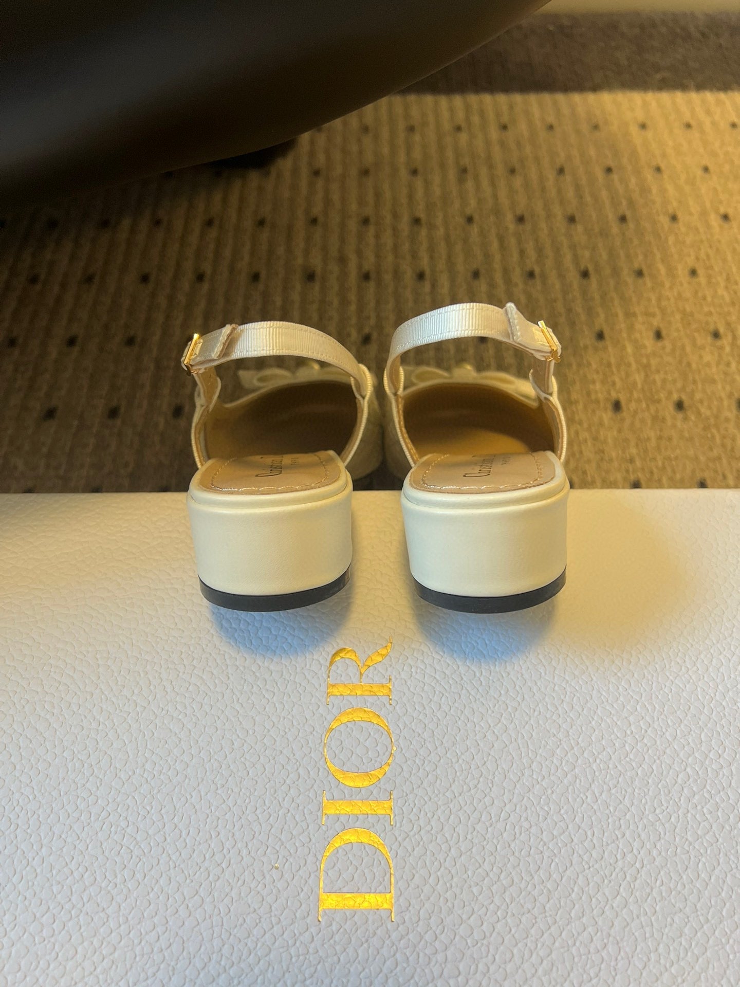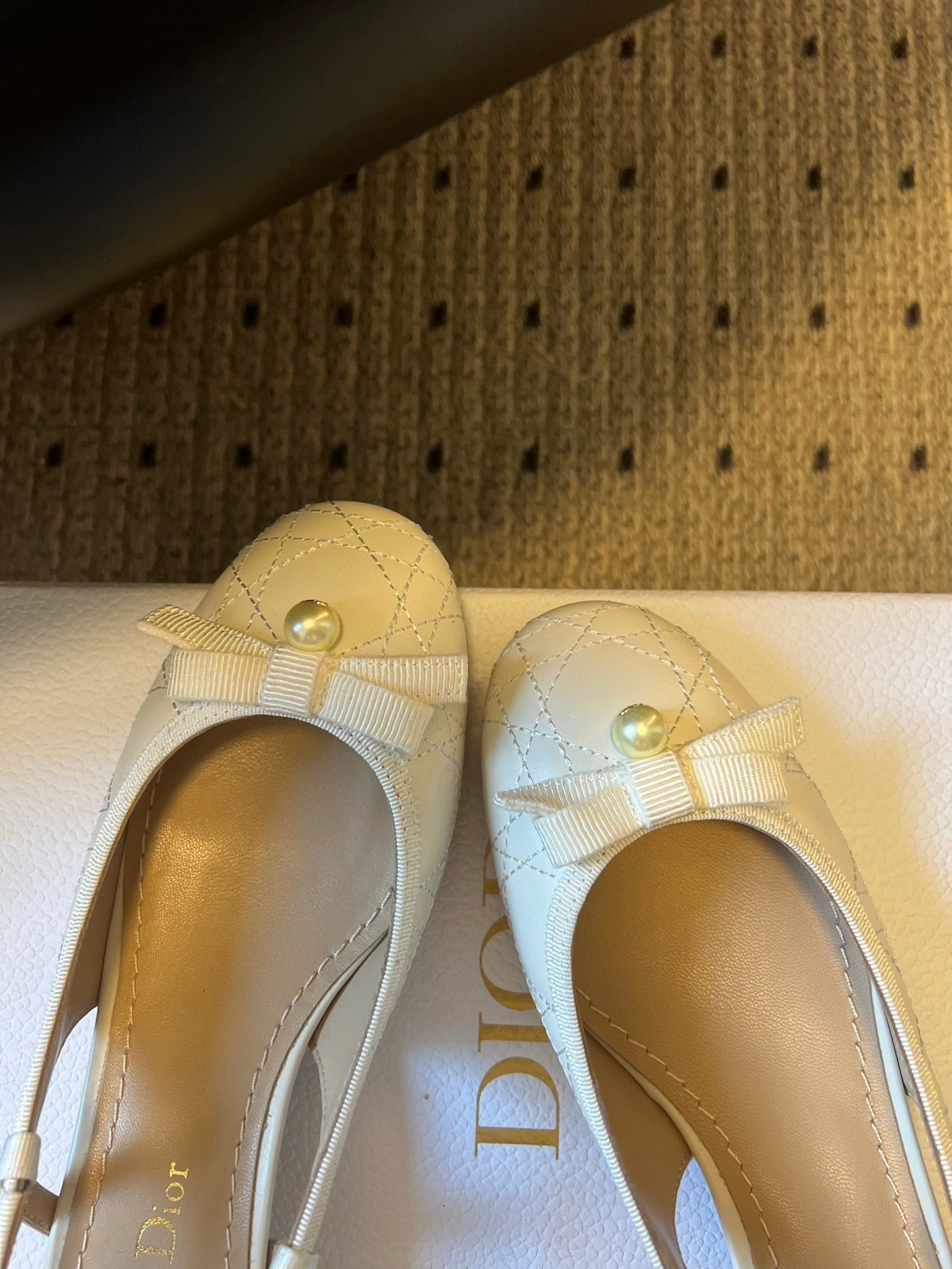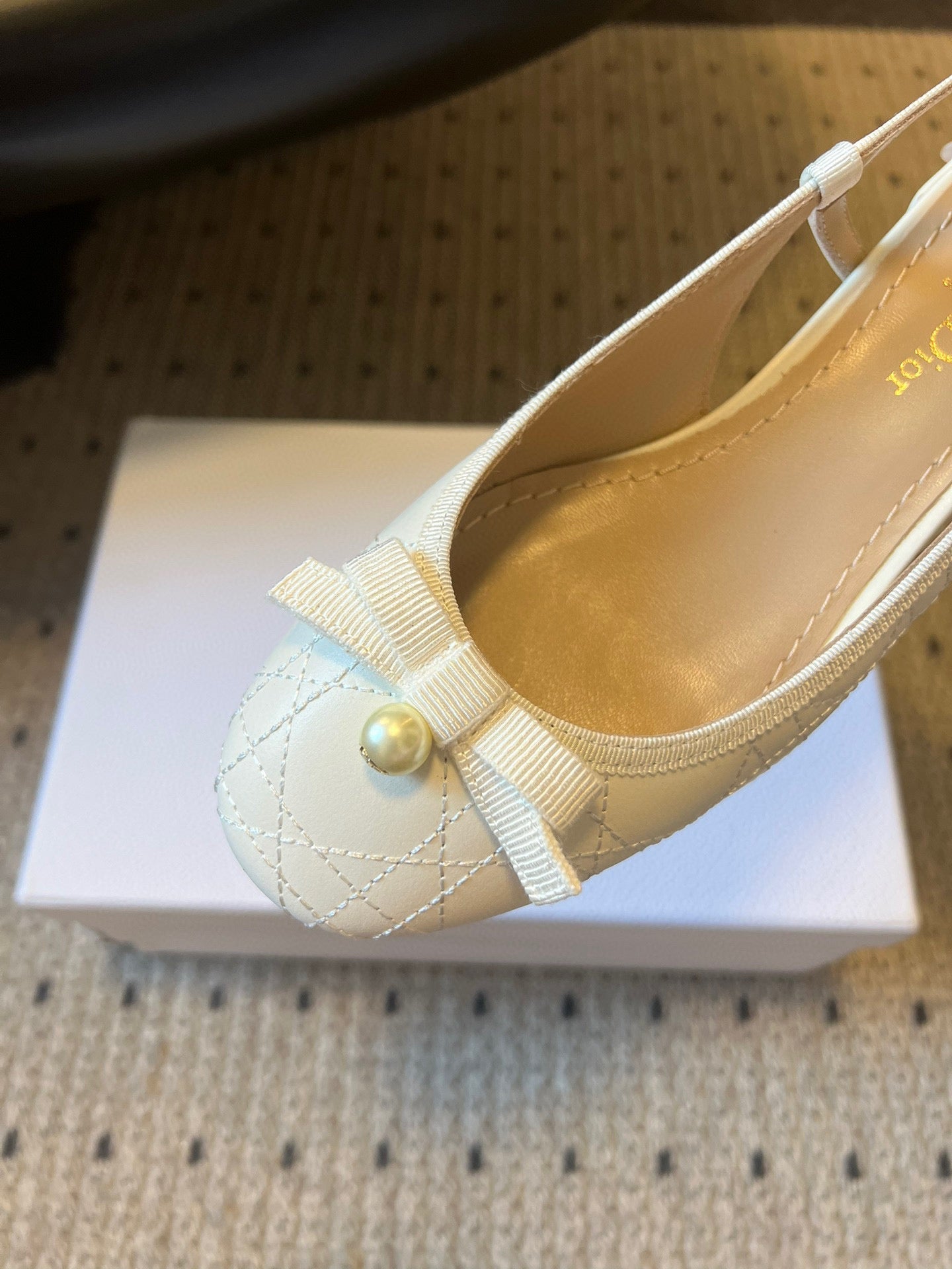 DIOR 26S OPEN BACK SANDALS IN CREAM WHITE CALFSKIN WITH PEARL BOW