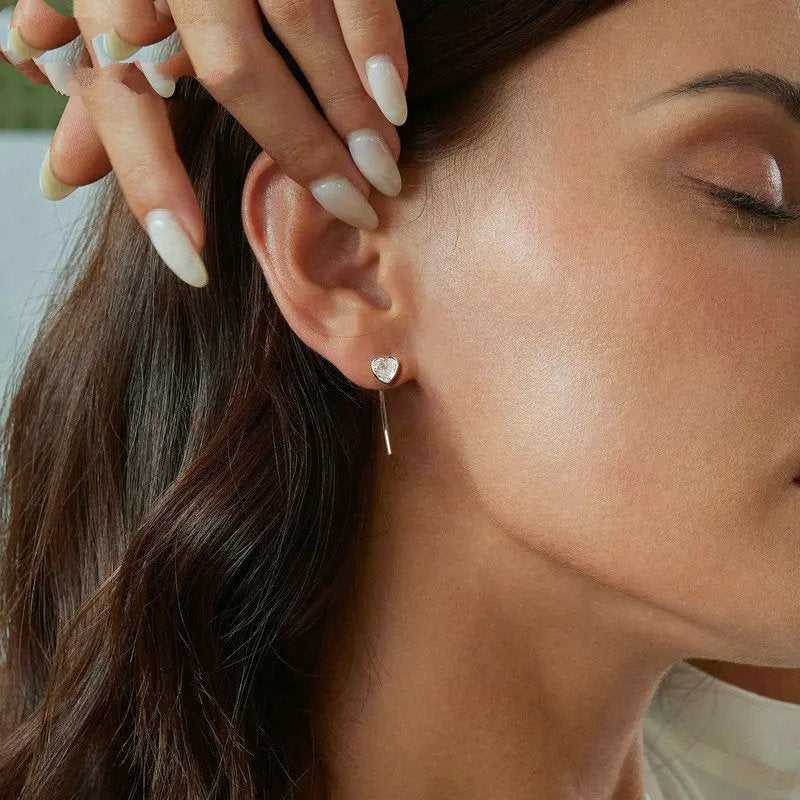 ❤ [Description] The heart stud earrings with long pins design delicate and unique. Classic shape of heart make them sweet and charming.