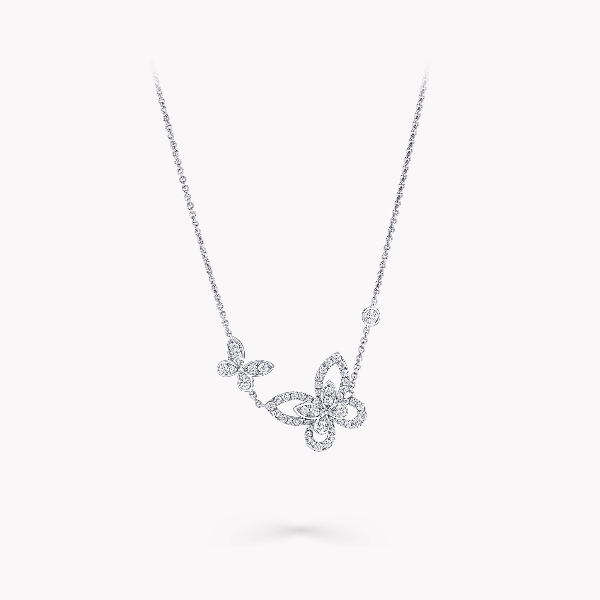 DOUBLE BUTTERFLY SILHOUETTE SILVER DIAMOND NECKLACE