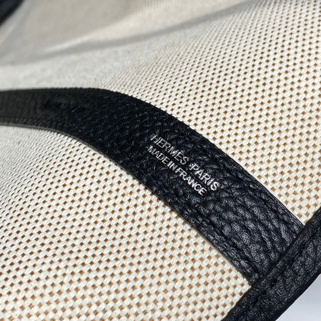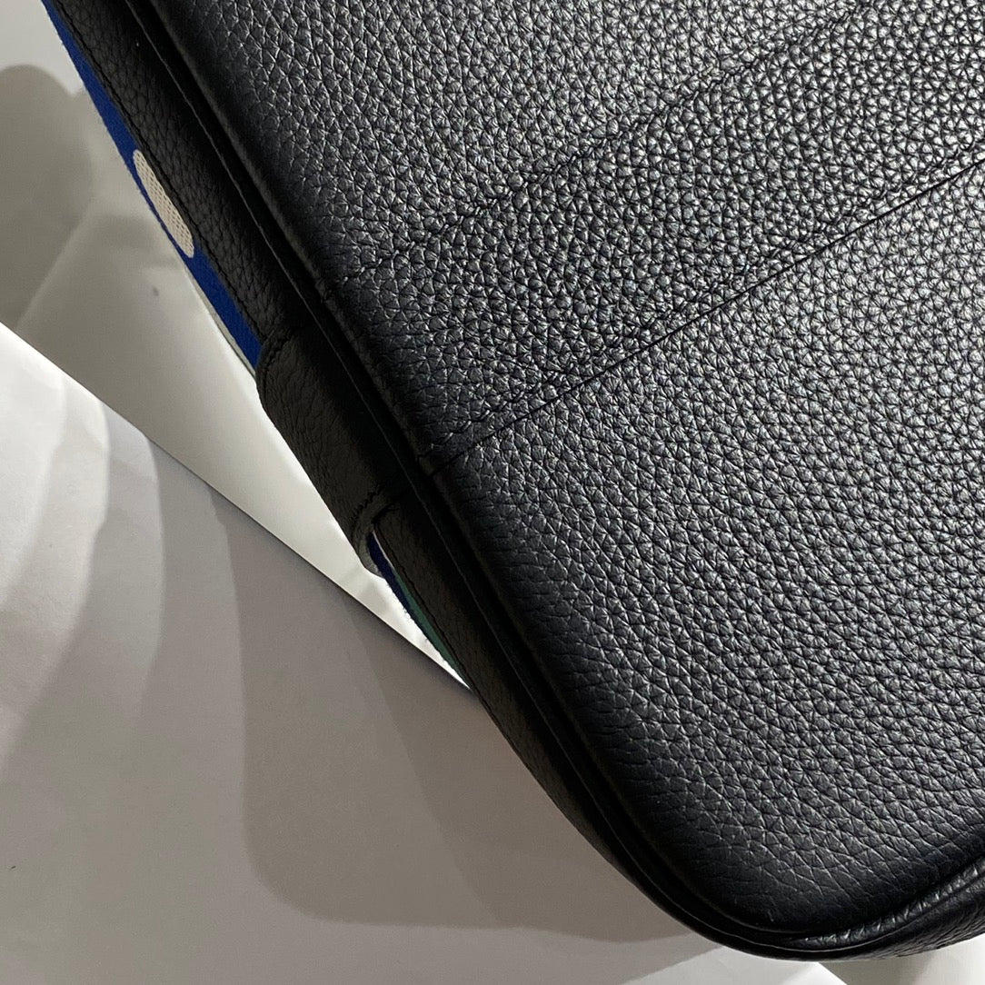 GARDEN PARTY 36 IN MULTICOLOR TOILE H CANVAS BLACK CALFSKIN OVERLAPPING POLKA RINGS PRINT
