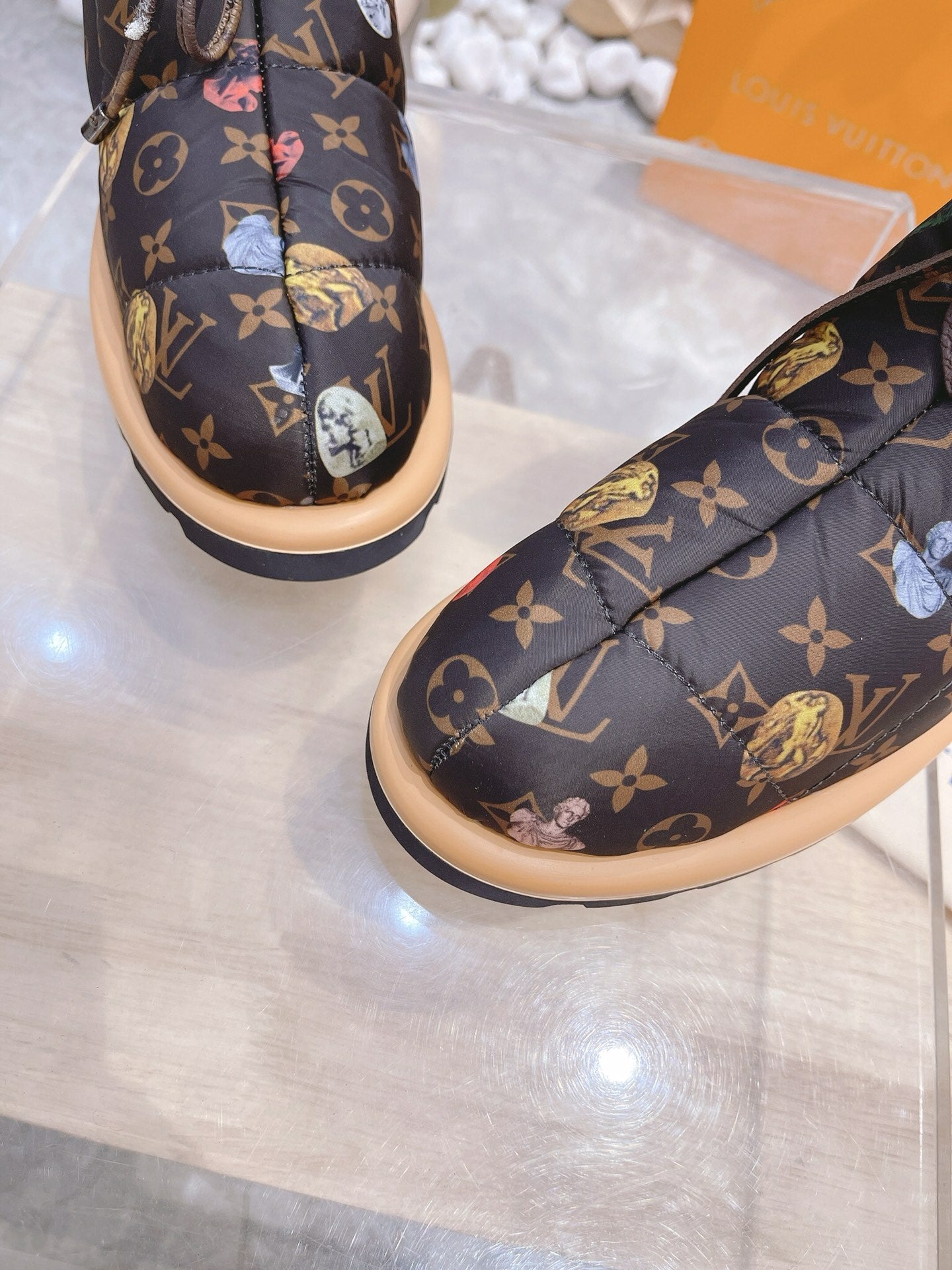 PILLOW COMFORT ANKLE BOOTS IN CHOCOLATE BROWN MONOGRAM NYLON