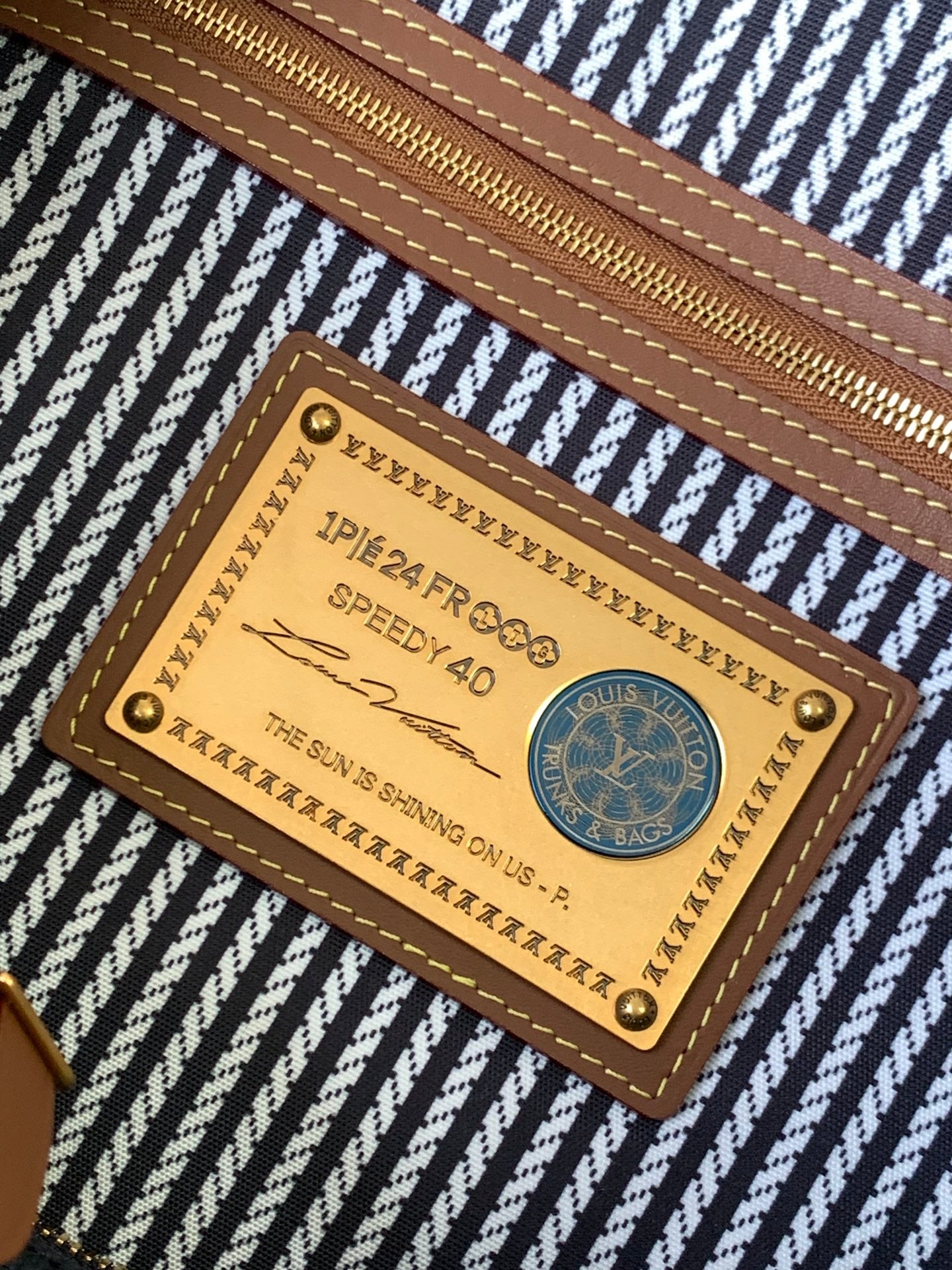 LV 25S SPEEDY BANDOULIÈRE BAG 40 IN CHARCOAL BLUE CALFSKIN GOLD HARDWARE