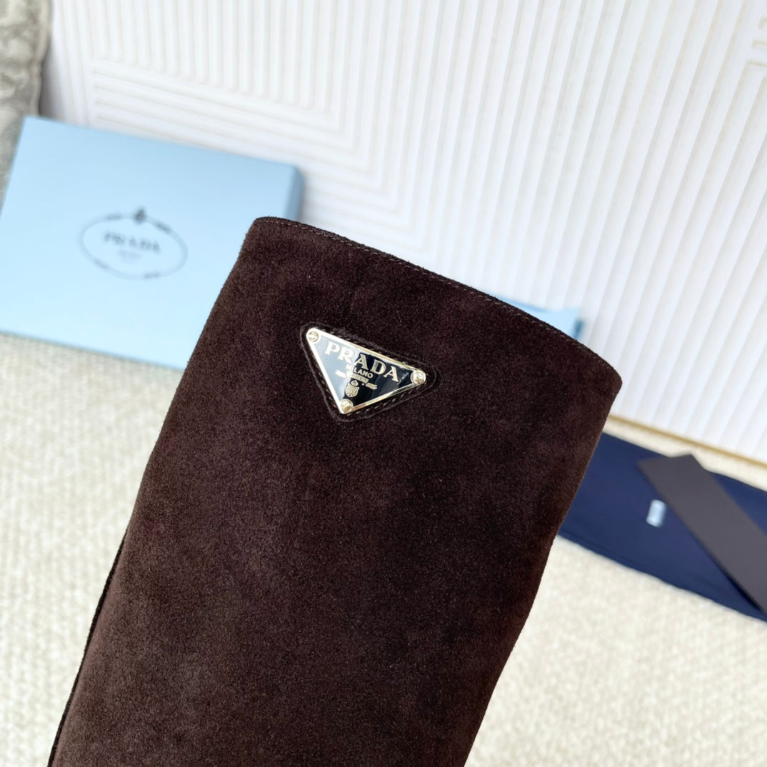 PRADA 25S HIGH-CUT BOOTS 55 MM IN DARK BROWN SUEDE