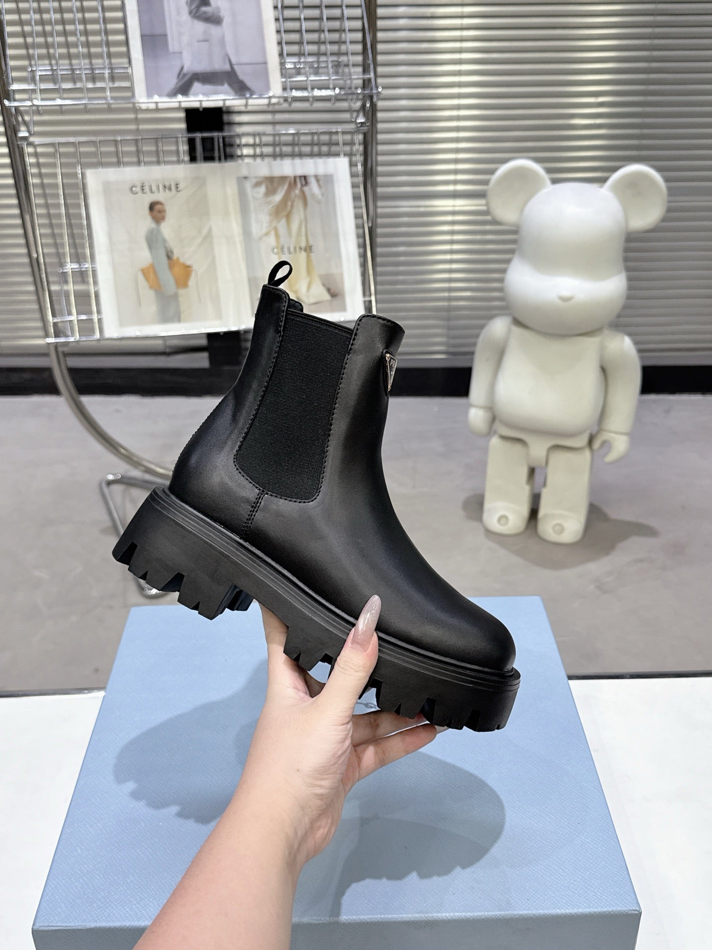 PRADA 25S RETRO PLATFORM MARTIN ANKLE BOOTS IN BLACK CALFSKIN