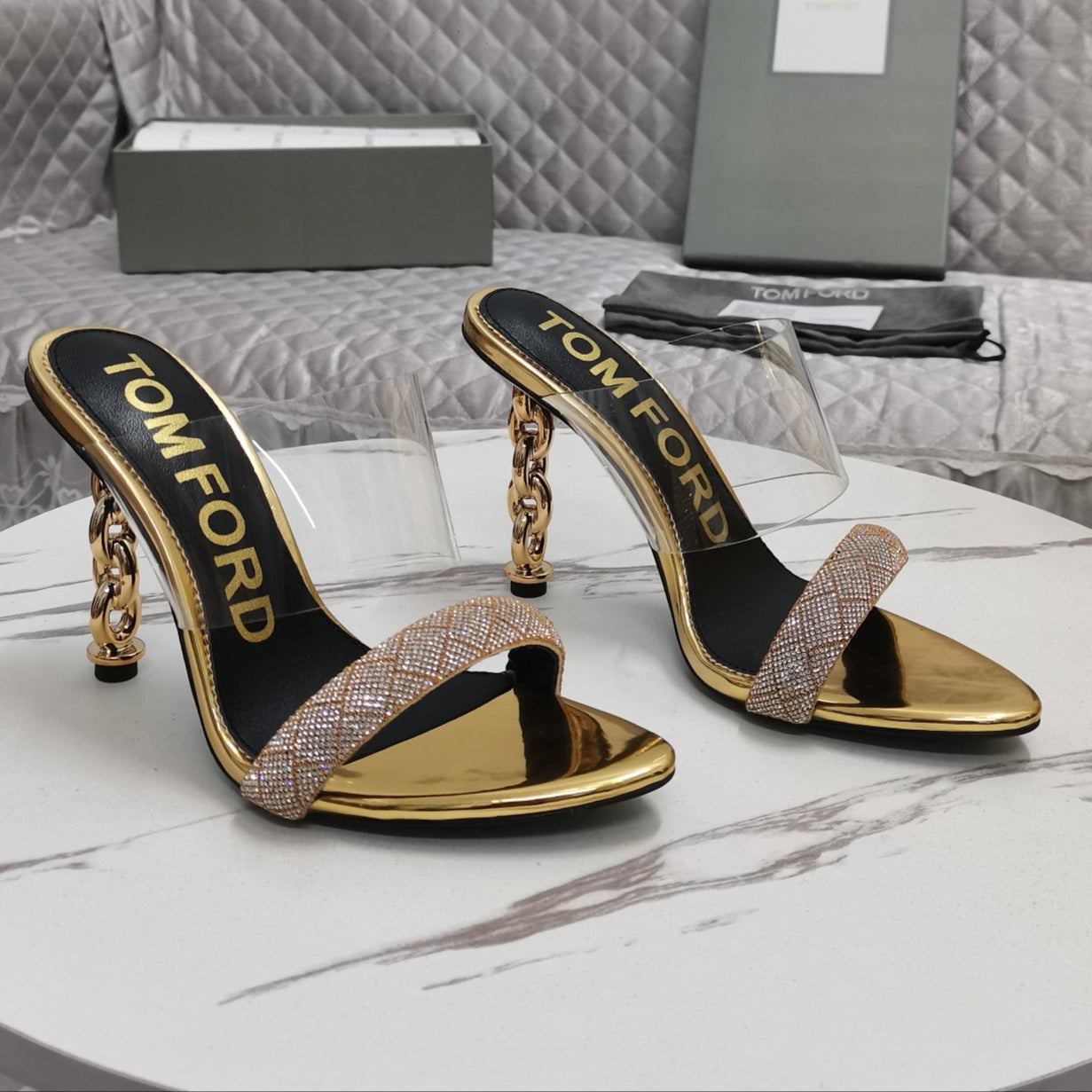 CRYSTAL HIGH HEEL MULE 10 CM IN GOLD LAMBSKIN