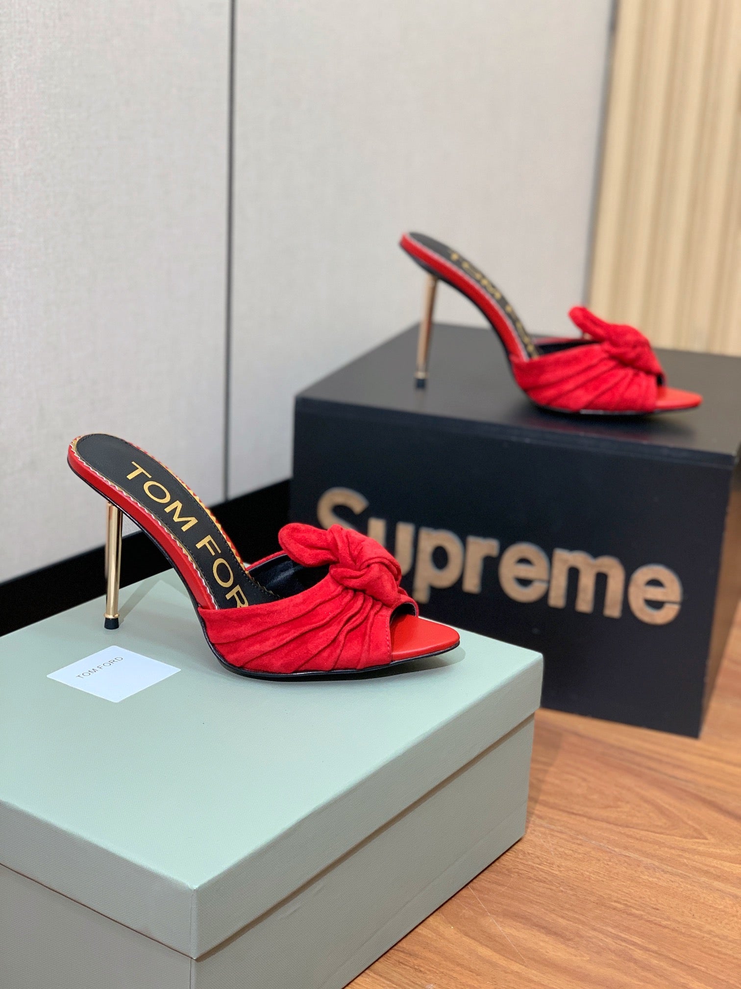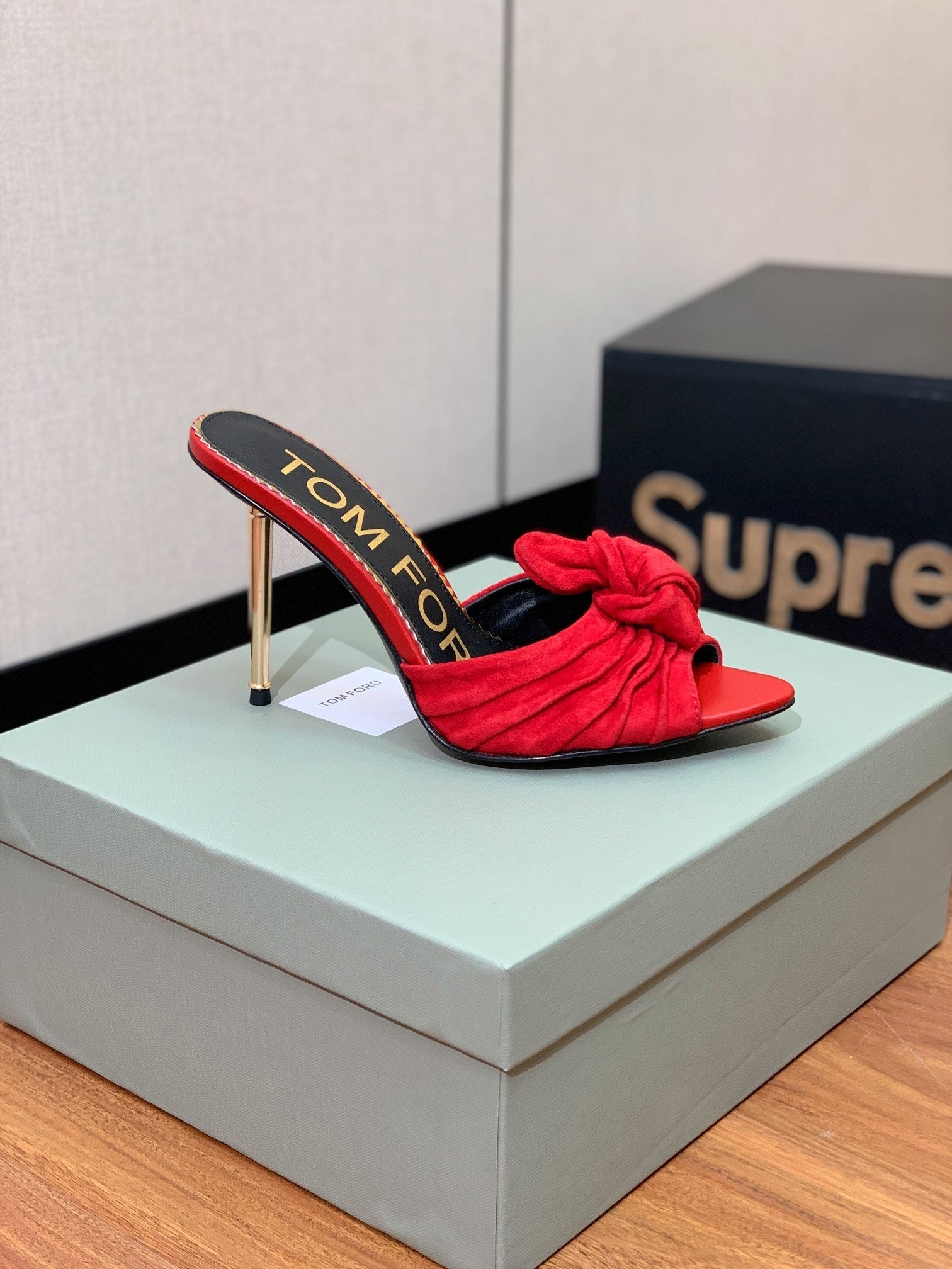 HIGH HEEL MULE 10 CM IN CHERRY RED SUEDE