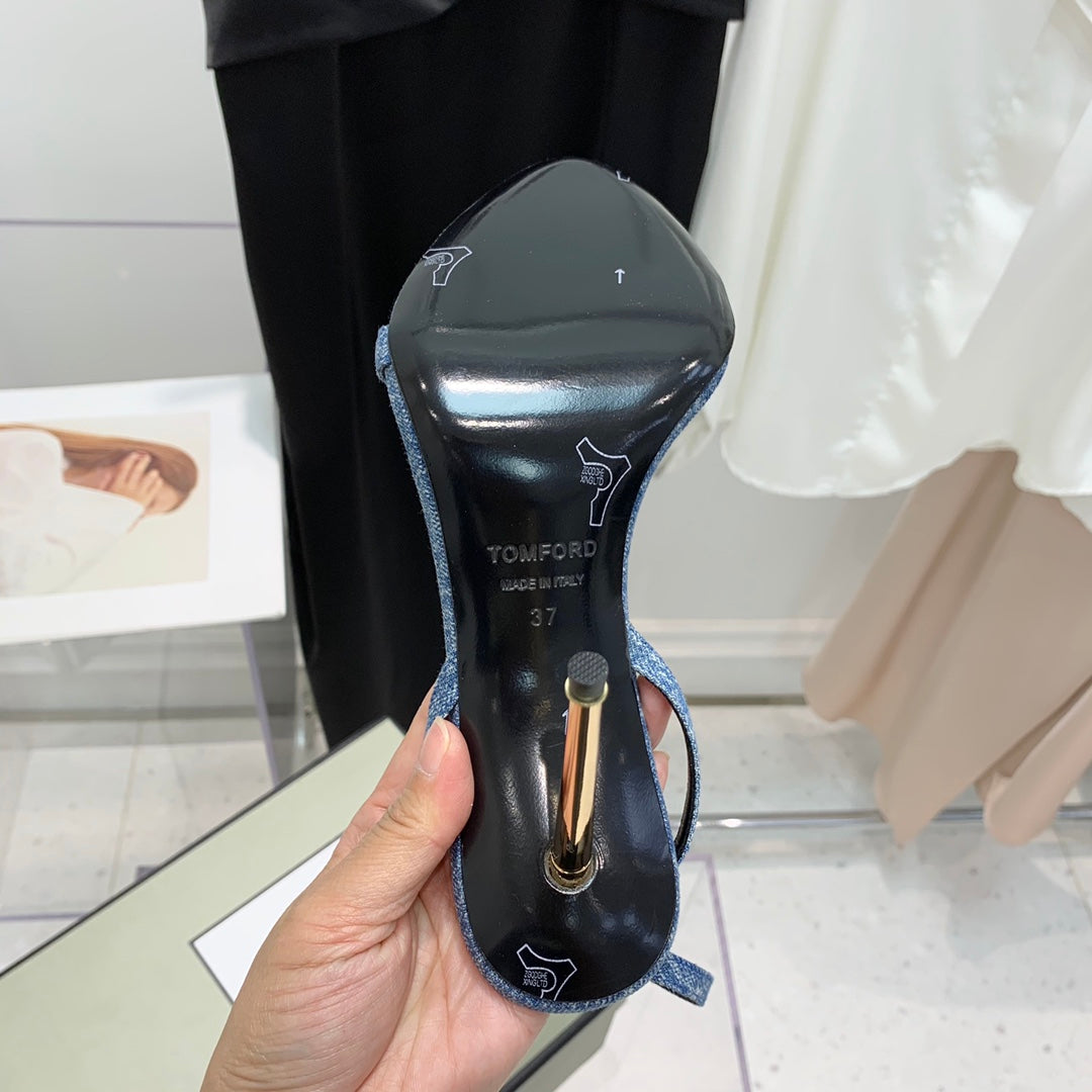 PADLOCK HIGH HEEL 10 CM SANDAL IN LIGHT BLUE DENIM