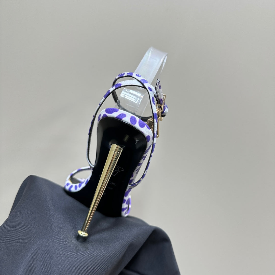 PADLOCK POINTY SANDAL 10 CM IN WHITE MIX IRIS PURPLE CALFSKIN