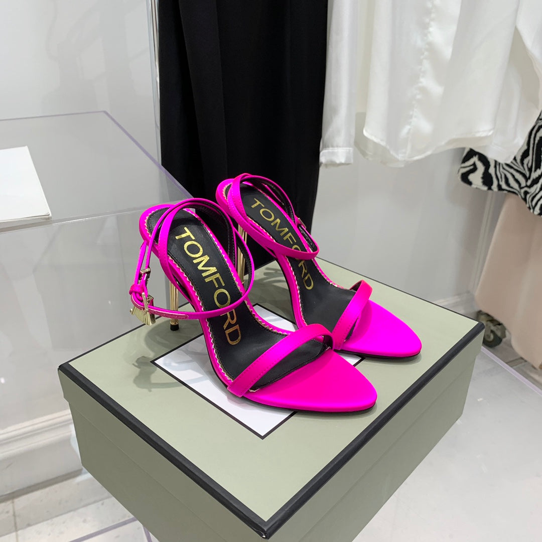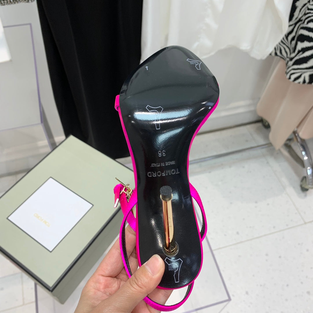 TOM FORD 26S GOLD BUCKLE HEELS 105 MM IN DARK PINK LAMBSKIN