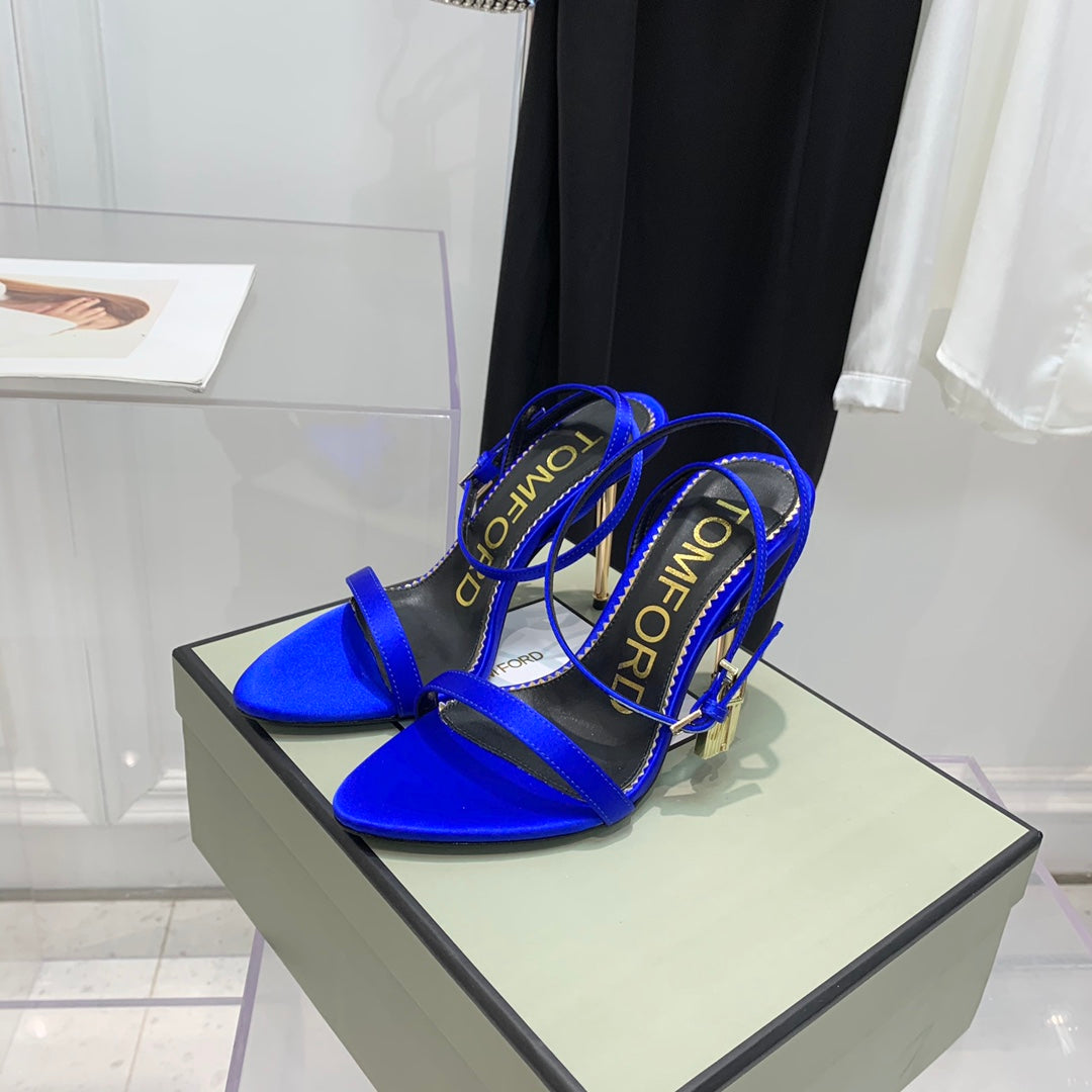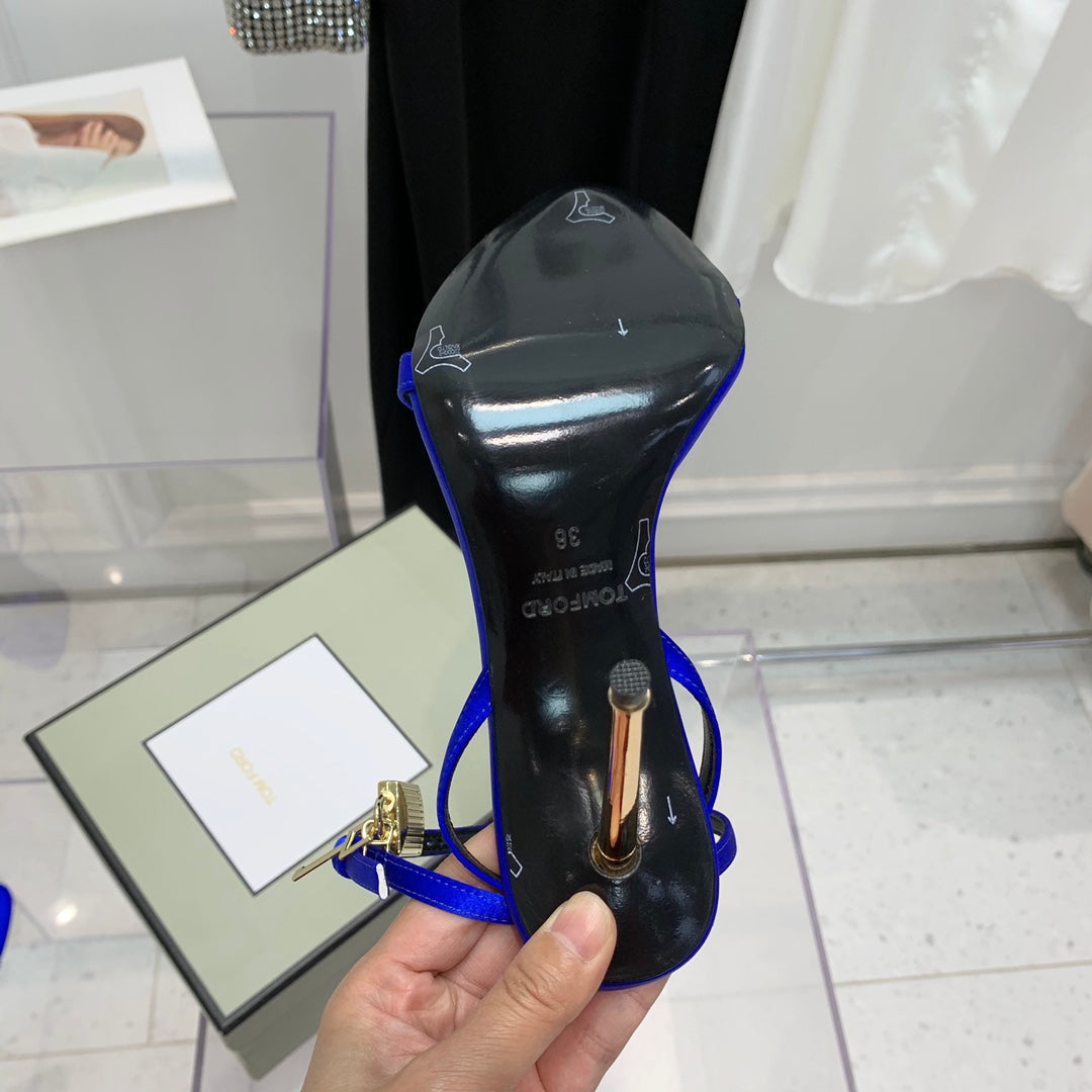 TOM FORD 26S GOLD BUCKLE HEELS 105 MM IN NAVY BLUE LAMBSKIN