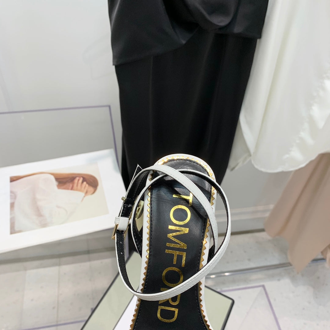 TOM FORD 26S GOLD BUCKLE HEELS 105 MM IN WHITE LAMBSKIN