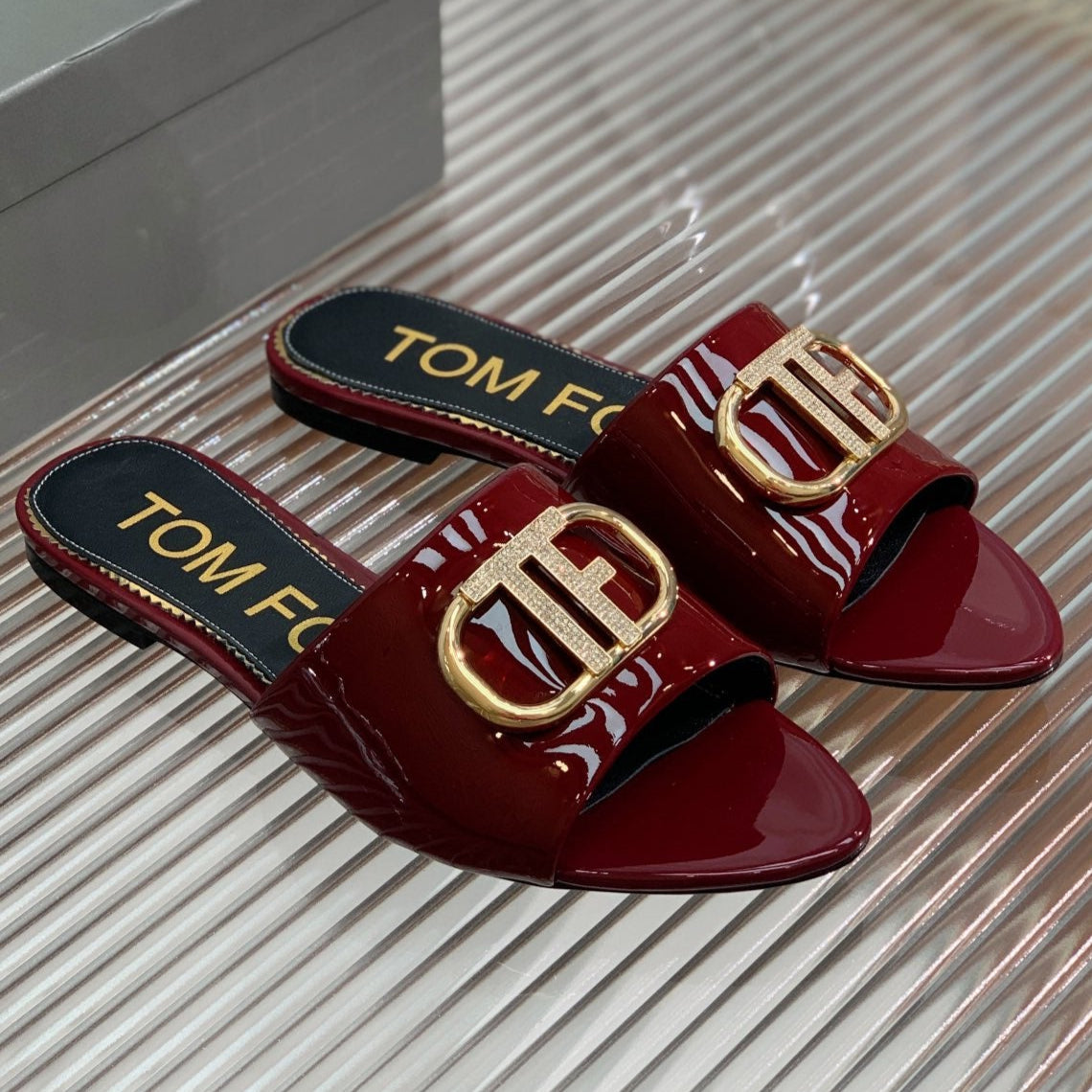 FLAT SLIDE IN WINE RED METALLIC CALFSKIN