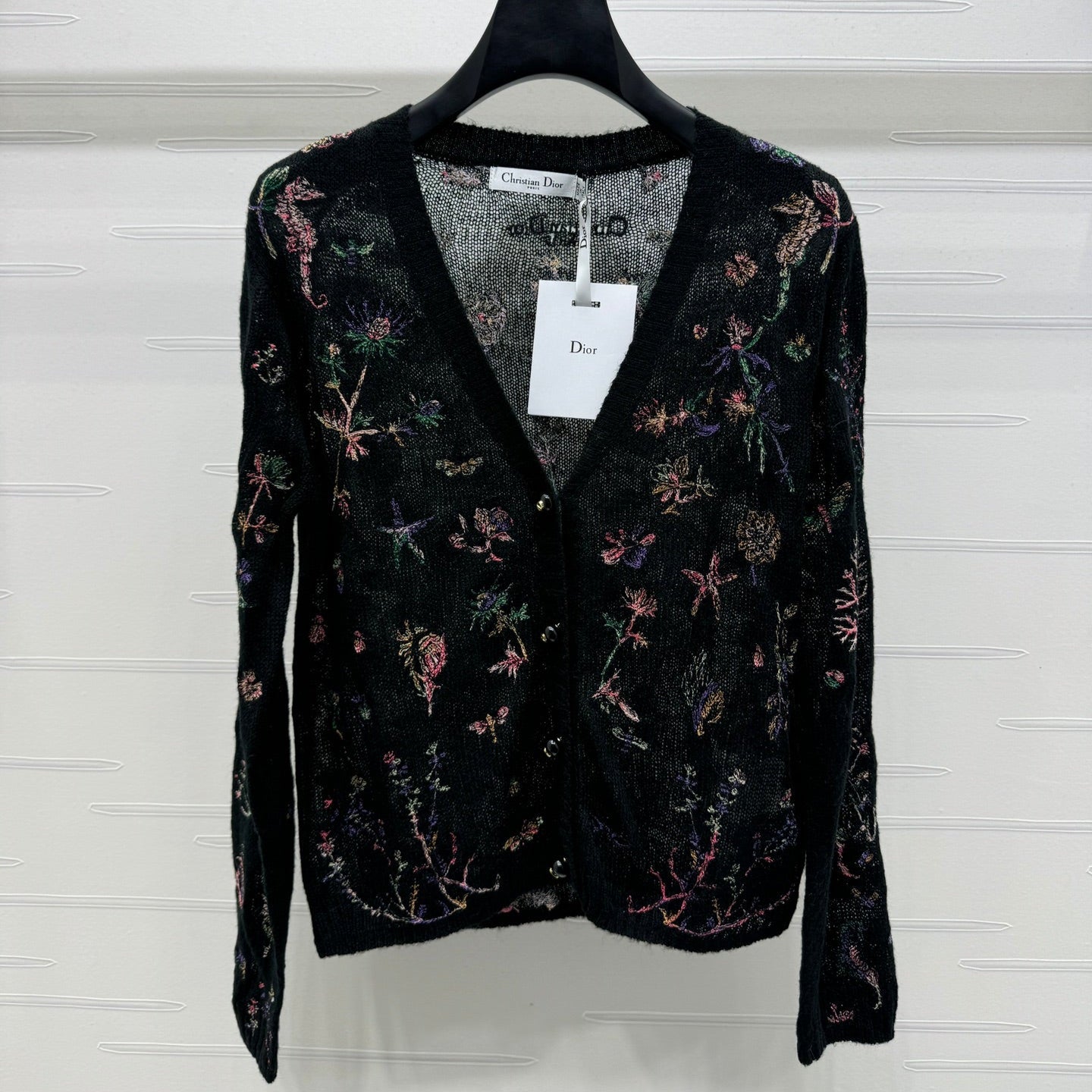DIOR KNITTED V-NECK FLORAL EMBROIDERED CARDIGAN 276698