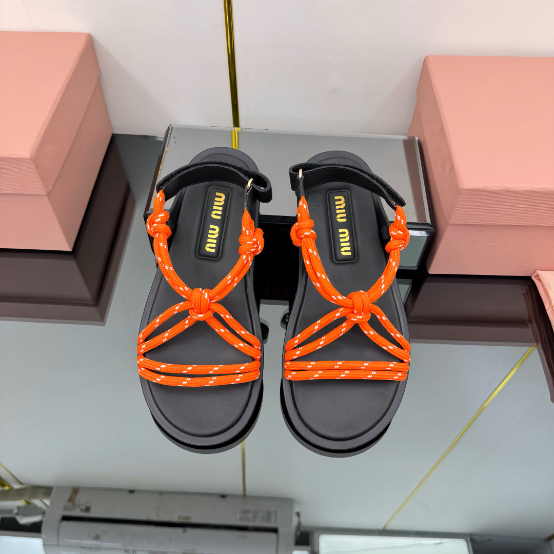 RIVIERE SANDALS IN BLACK CALFSKIN ORANGE CORD