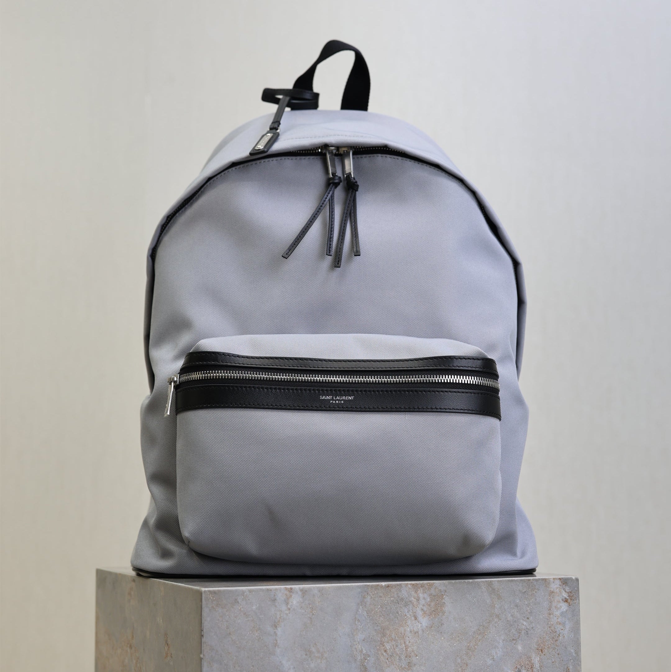 YSL 25S CITY BACKPACK 38 IN SLATE GRAY CANVAS AND CALFSKIN