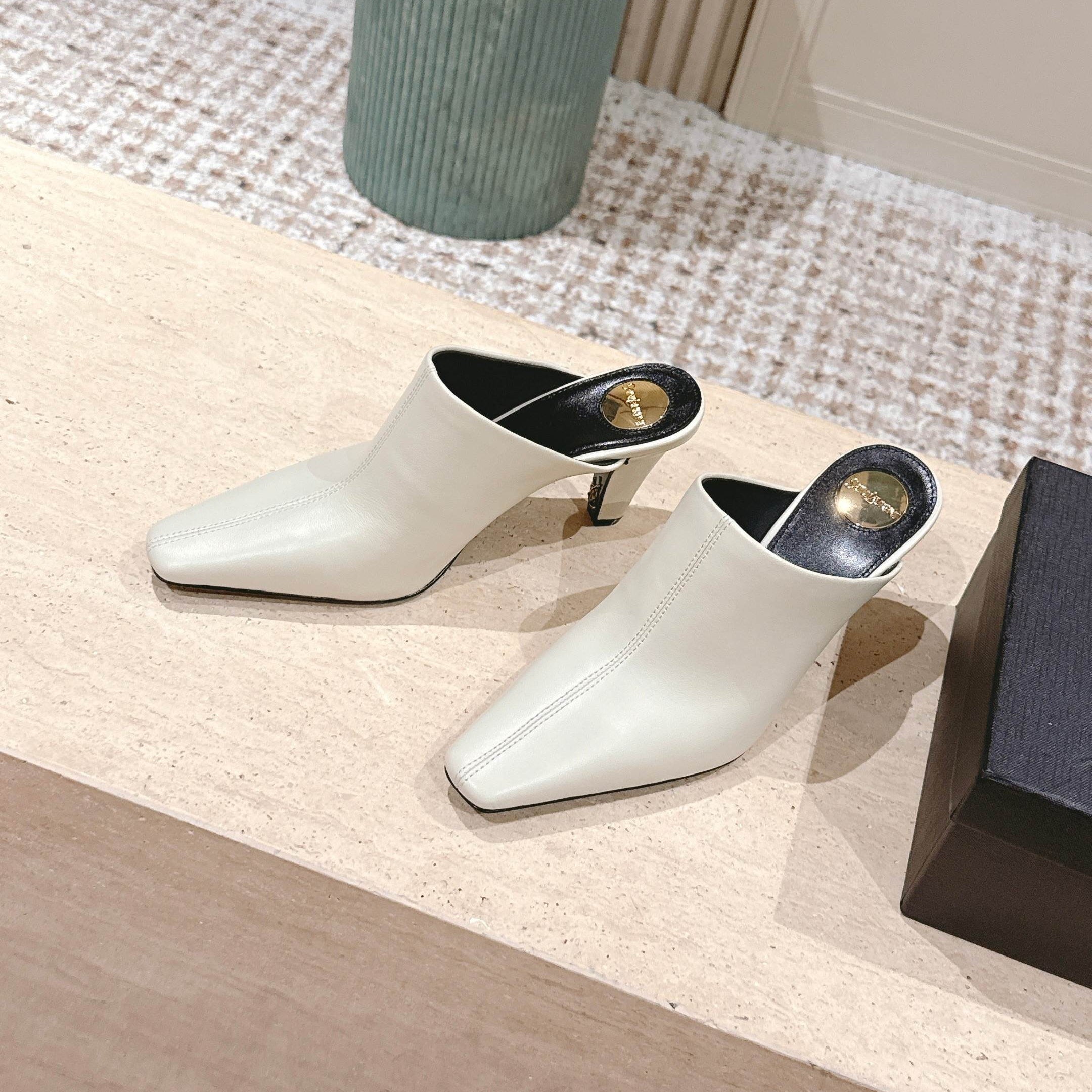 YSL 25S JILL MULES IN IVORY SMOOTH CALFSKIN